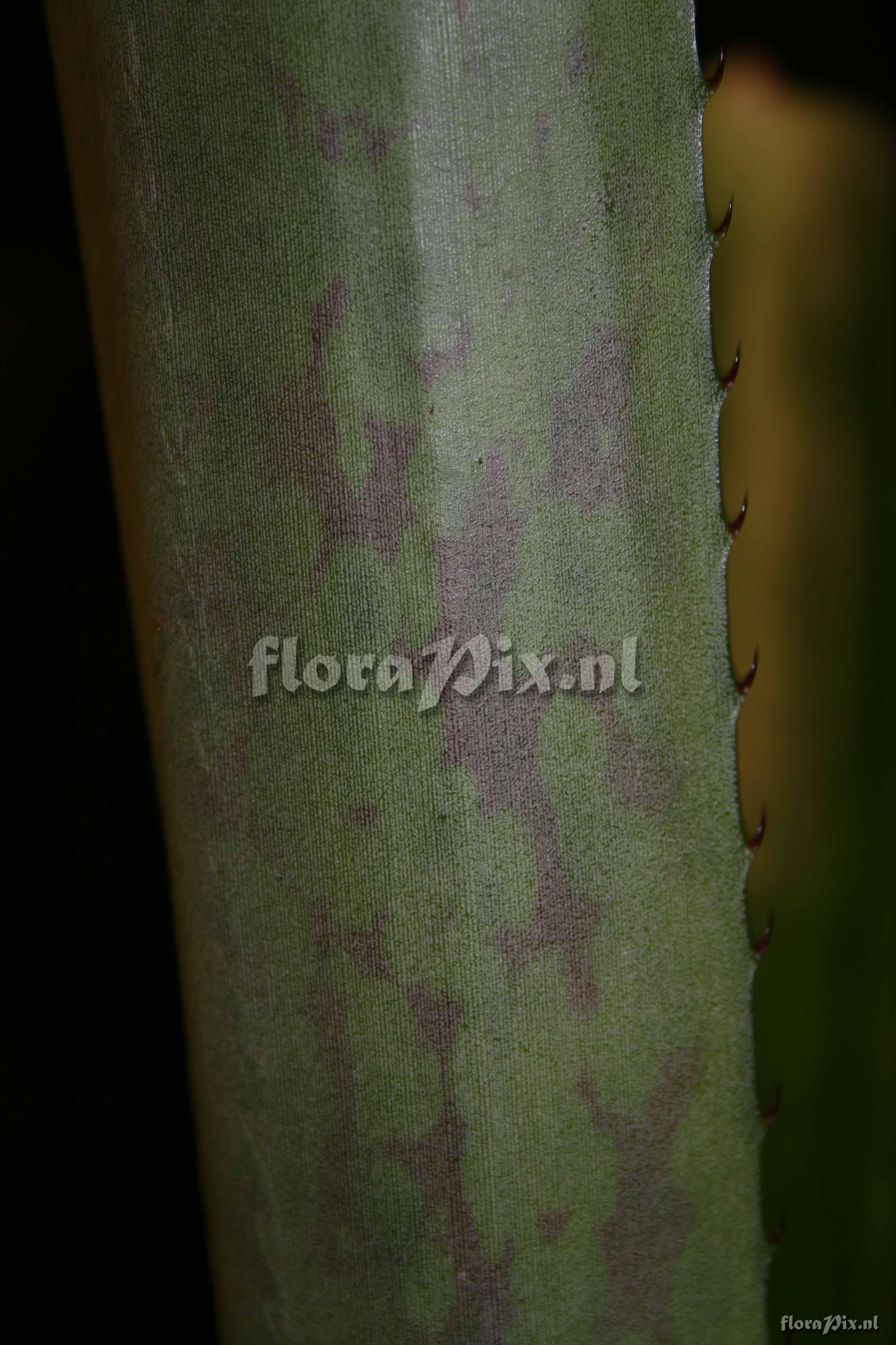 - I added two pictures from my plant after cultivation in the open, my garden in Germany. The plant developed the typical N.-correia-araujoi-markings that fade away with age or in the winter. As N. johannis should have no blotchy markings, this plant should be N. correia-araujoi. (Verzonden: brom-l@nic.surfnet.nl) - Opmerking (1837): Eric Gouda (2010-01-27) - The description of N.johannis is very poor and no specimen available and locality is unknown: Plant very stout. Leaves rather few, to 5 dm long; Blades gently re-curving, channeled, subtrunctate and then terminating in a stout black spine, pale green or whitish, red-spotted, laxly serrulate. Inflorescence deep in the leaf-rosette. Petals slightly exceeding the floral bracts and sepals, acuminate, white, spreading.