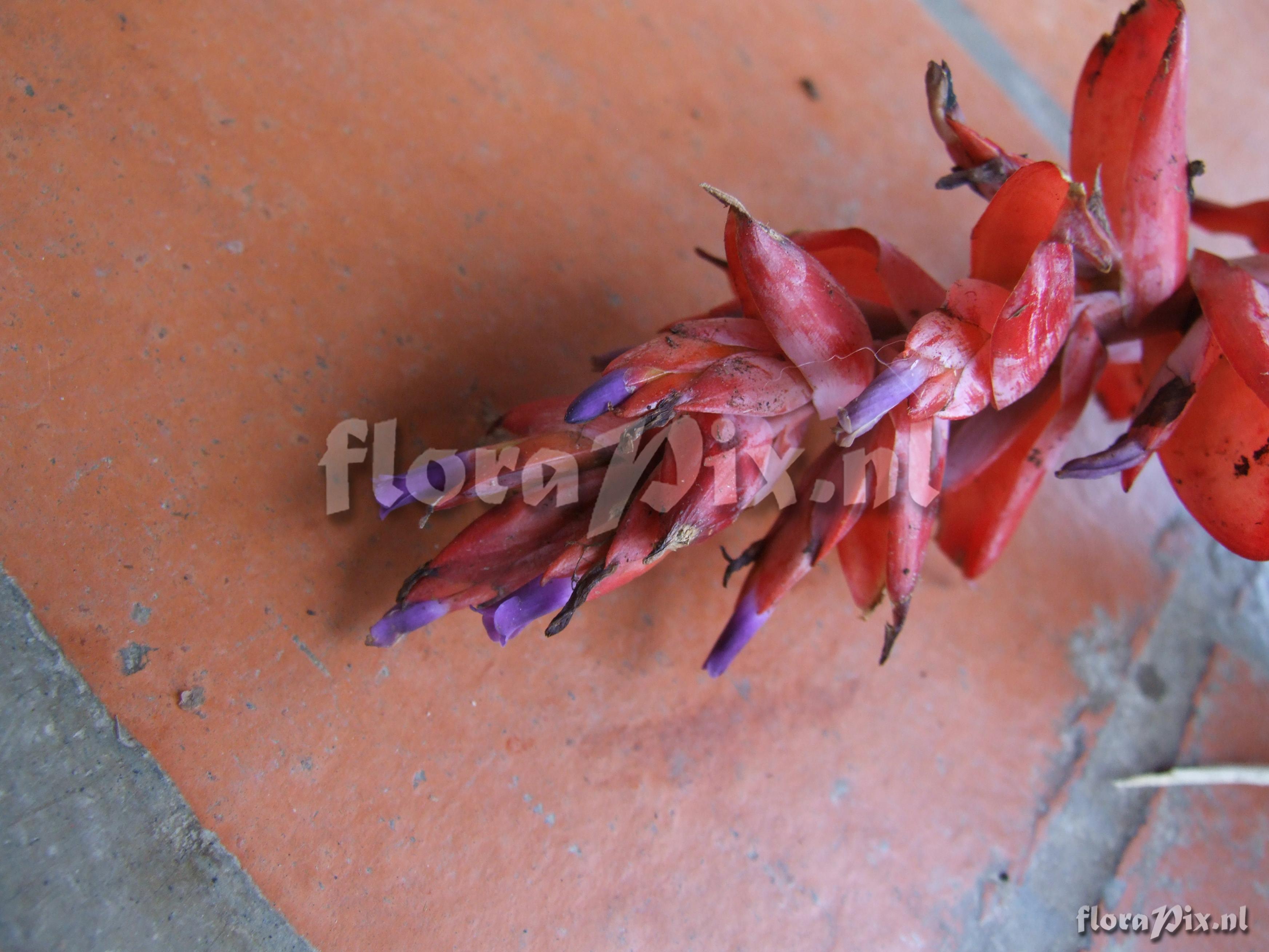 (Geladen als: Tillandsia compacta Griseb.-) Verzamel locatie: Ecuador - Prov. of Zamora-Chinchipe, area of Estación Cientifica San Francisco (S 03°58´, W 79°04´ ), road Loja-Zamora, ca. 35 km from Loja; moist montane forest Fotograaf: Florian Werner Opmerking: Col.: Werner, F.A. 1963 (23-04-2006) - Det.: H. Luther (SEL) 2007 "leaf undersides waxy; leaves forming an erect vase with central tank; semi-pendant infl.: bracts bright red, petals intense lila." Determinatie: Opgelost