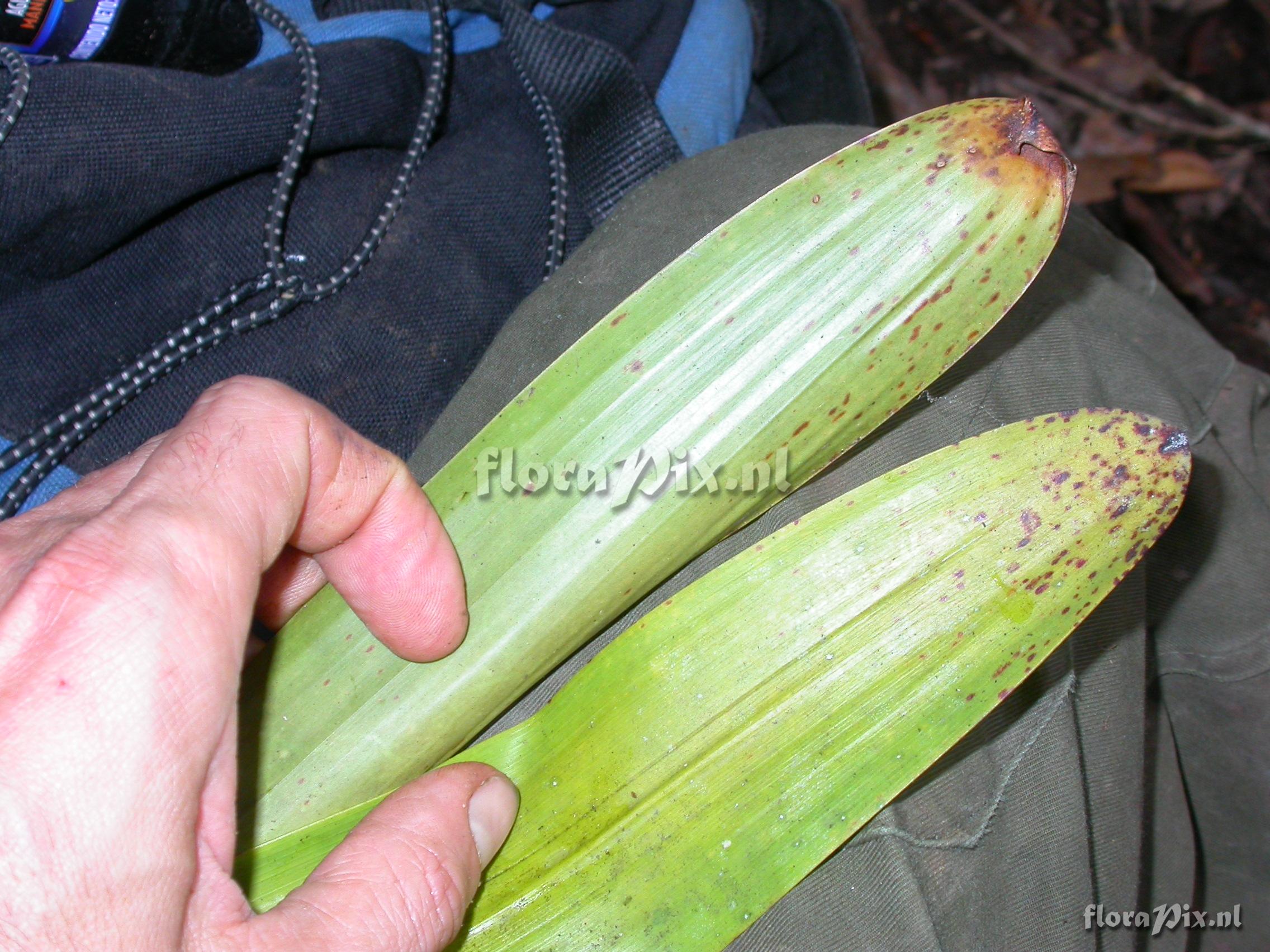 Verzamel locatie: Ecuador - Prov. of Zamora-Chinchipe, area of Estación Cientifica San Francisco (S 03°58´, W 79°04´ ), road Loja-Zamora, ca. 35 km from Loja; moist montane forest Fotograaf: Florian Werner Opmerking: Col.: Werner, F.A. 2828 (14-12-2008) slightly remaining E-ssp. of T. complanata in its light green and compact built, but terminal halt of leaves not bowing down like in that species. Best lump with T. tovariensis!!