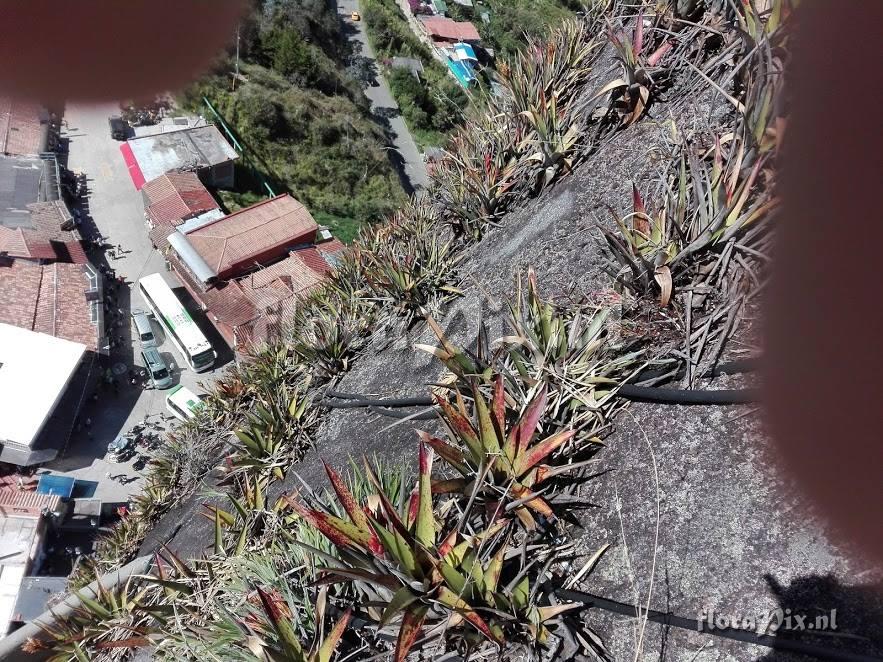 Don't think this is similar with the other two images. - Add Note (15447): Laura Ospina (2018-09-03) - The photos are all of the same locality in increasing closeness. This is in El Penon de Guatape also known as the Stone of El Penol. It is a landmark inselberg in Colombia located in Guatape, Antioquia. Wikipedia says that a new species of plant, named Pitcairnia heterophylla by a German scientist, was found on the top of the rock. (Sent: brom-l@science.uu.nl)