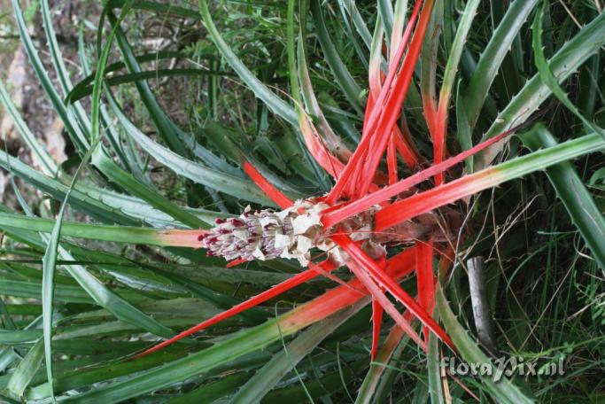 5547 - Bromeliads (Garden) - 2010-03-13(Dimension: 713 x 1074 pixels - Counter: 25333) Bromelia ?antiacantha ![]() Locality: Origin of plant unknown. Photographer: Doug Binns Note: In cultivation in Australia. Bought as B. antiacantha, but differs from description of that species in S&D, in having sessile, not petiolate, flowers and longer sepals (15-20 mm) which are fleshy, not submembranaceous; my specimen may also be a smaller plant, the leaves are about 1.3 m long. In S&D, it keys to B. laciniosa, although that probably doesn't mean much since the alternate in couplet 6, and B. antiacantha, are both missing from my copy. Identification: