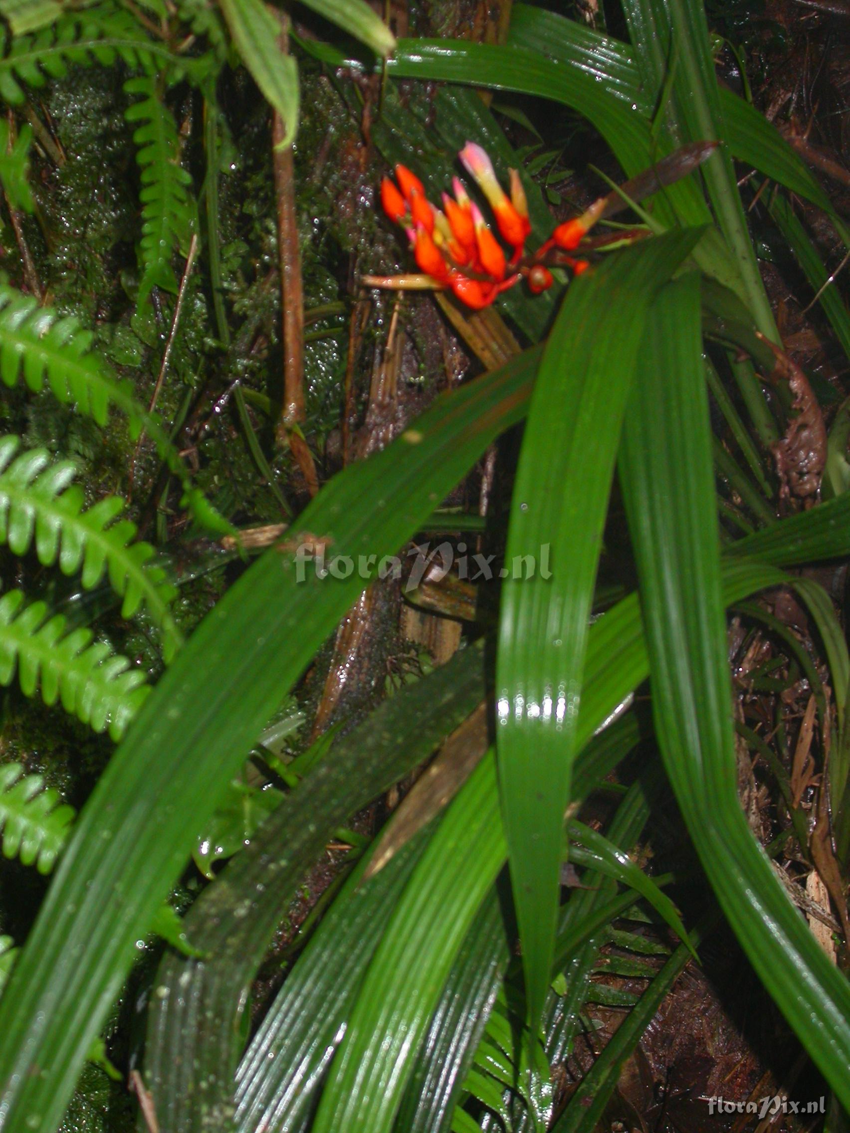 7884 - Bromeliads (Wild) - 2011-10-13(Dimension: 1734 x 2322 pixels - Counter: 9983) Pitcairnia cf. hiertzii ![]() Locality: Ecuador - Prov. of Zamora-Chinchipe, area of Estación Cientifica San Francisco (S 03°58“, W 79°04“ ), road Loja-Zamora, ca. 35 km from Loja; moist montane forest Photographer: Florian Werner Note: Col.: Werner, F.A. 3064 (25-04-2010) - Det.: W. Till (U Vienna) 2011 "plant totally free of spines; shoot erect and ca. 1 cm in diam; infl. bright brick-red but corolla orange."