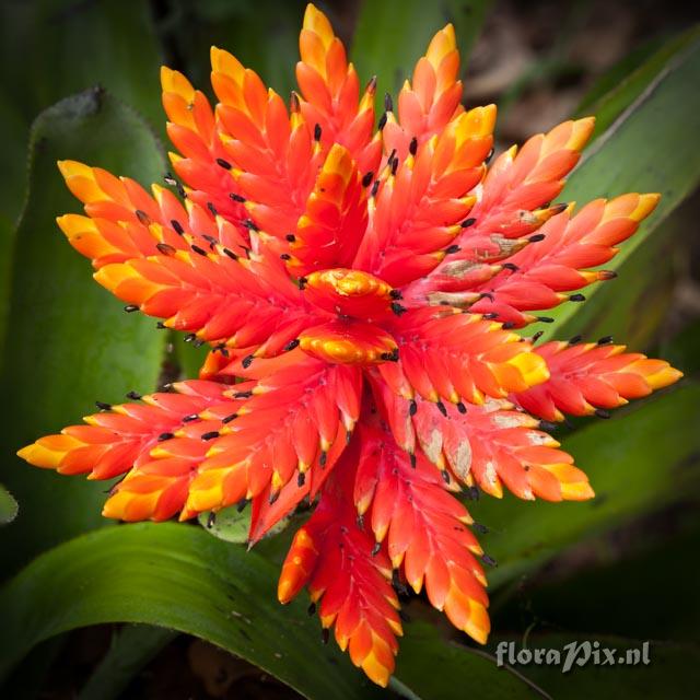Verzamel locatie: Costa Rica - Alajuela Province - This beautiful bromeliad was planted in the gardens at the La Paz Waterfall Gardens at approximately 4800 ft. elevation. Fotograaf: Dr Jon Fuller Opmerking: In looking at images online, I believe it is either Achmea manzanaresiana or tessmannii. Can anyone tell for certain? (Verzonden: brom-l@science.uu.nl) Determinatie: in behandeling