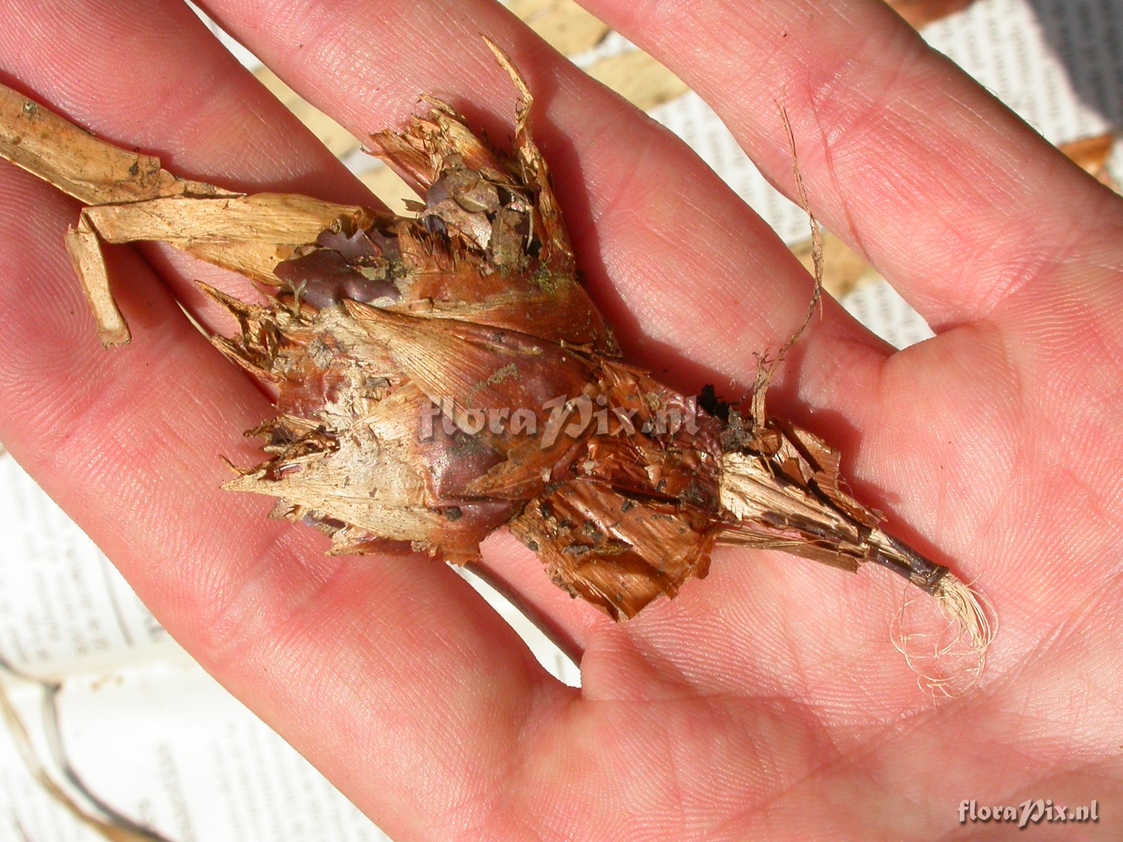Verzamel locatie: Ecuador - Zamora-Chinchipe Province; few km east of Pass (""El Tiro"") between Loja and Zamora; moist lower slope forest Fotograaf: Florian Werner Opmerking: Col.: Werner, F.A. 2136 (09-12-2006) "leaves 25-30cm long, base chestnut-brown on both sides, shoot ca. 1cm diameter; considerably smaller than any other local Greigia; single leaves from mat. plant."