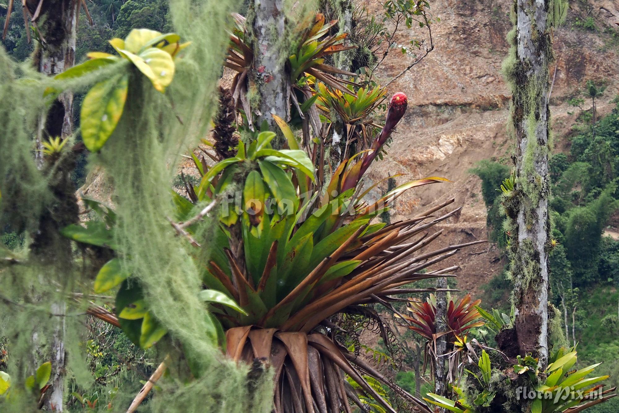 Verzamel locatie: Ecuador, Morona-Santiago Province - On side road off of Hwy 45 14 km north of Gualaquiza at an elevation of 1580 meters. These were growing in old trees of a remnant forest that is now a pasture. I also saw this plant on the road from Los Encuentros going east toward the Condor Mountains. Fotograaf: Jerry Raack Opmerking: Grows in concert with Tillandsia confinis, Tillandsia fendleri, and Tillandsia tovarensis/maculata complex. A large plant growing epiphytically. (Verzonden: brom-l@science.uu.nl)