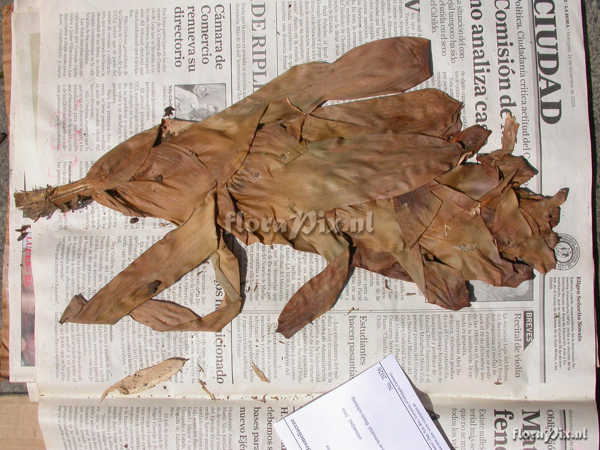 Verzamel locatie: Ecuador - Province of Loja, Parque Nacional Podocarpus, Cajanuma Fotograaf: Florian Werner Opmerking: Col.: Werner, F.A. 2026 (08-06-2006) - Det.: W. Till (U Vienna) 2011 (lower canopy, understorey) or terrestrial. Bracts subduing flowers bright red, petals yellow. 30.3.08: seen at 2700m on old Loja-Zamora road.