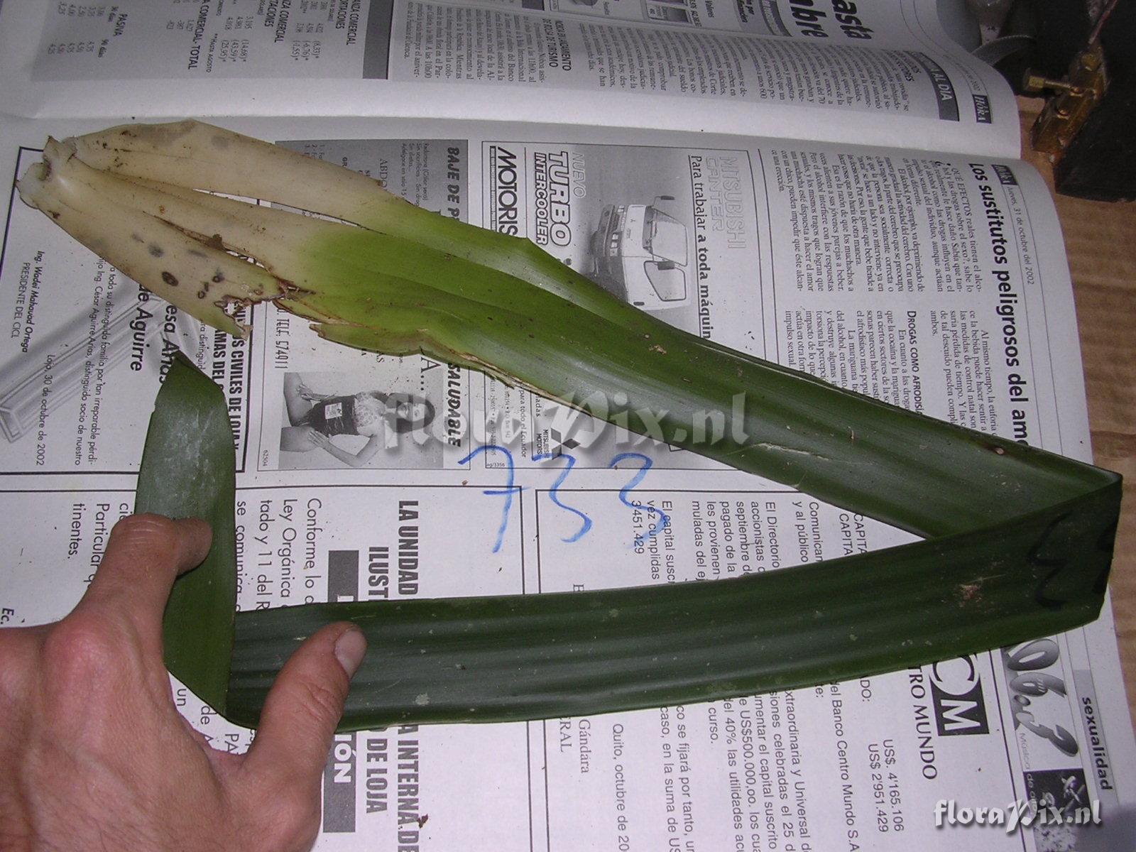 Verzamel locatie: Ecuador - Prov. of Zamora-Chinchipe, area of Estación Cientifica San Francisco (S 03°58“, W 79°04“ ), road Loja-Zamora, ca. 35 km from Loja; moist montane forest Fotograaf: Florian Werner Opmerking: Col.: Werner, F.A. 733 (09-01-2004) - Det.: J.M. Manzanares "flowers greenish white; leaf base whitish"
