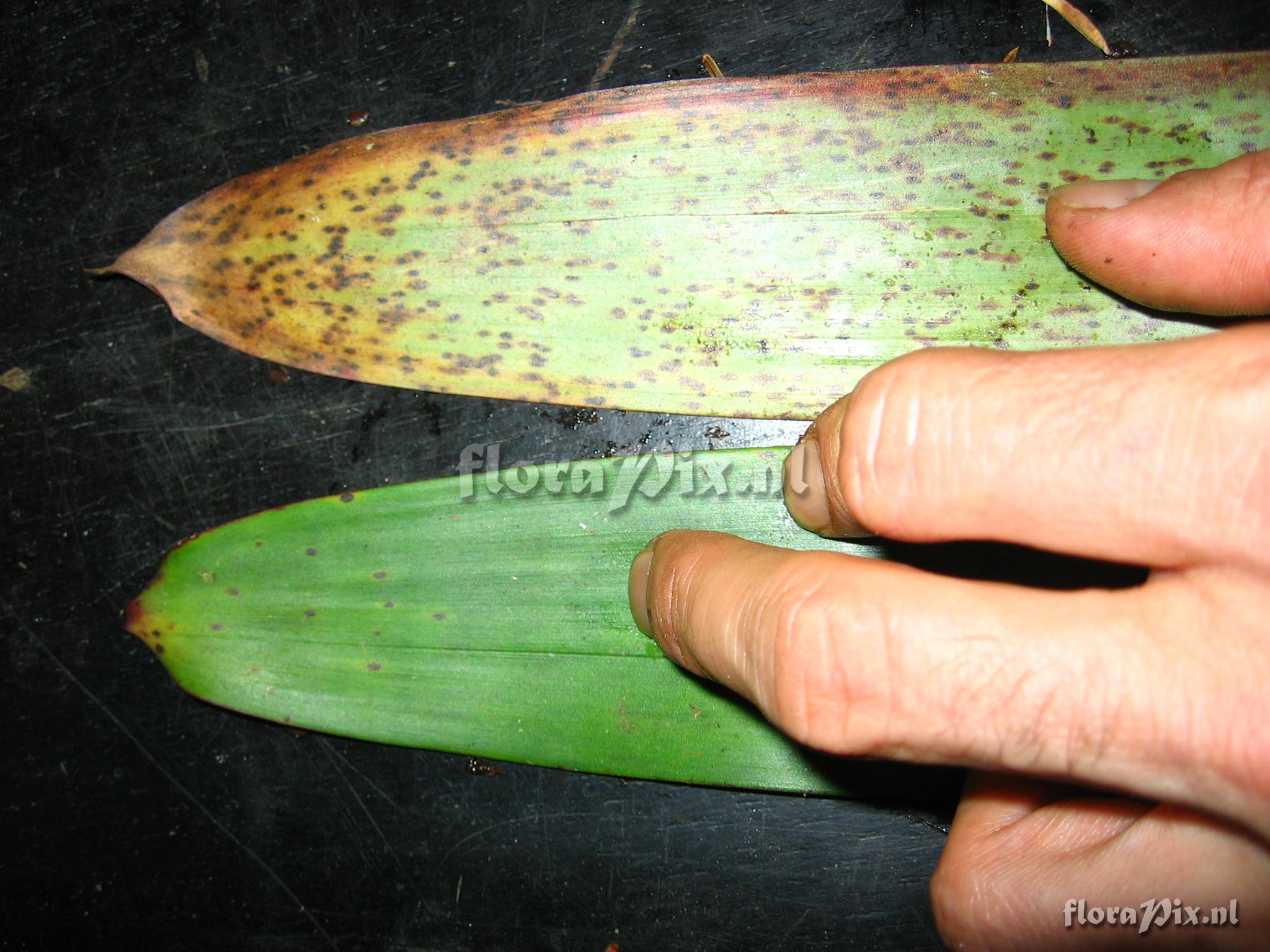 (Geladen als: Guzmania pennellii L.B.Smith) Verzamel locatie: Ecuador - Prov. of Zamora-Chinchipe, area of Estación Cientifica San Francisco (S 03°58“, W 79°04“ ), road Loja-Zamora, ca. 35 km from Loja; moist montane forest Fotograaf: Florian Werner Opmerking: Col.: Werner, F.A. 1827 (19-11-2005) - Det.: H. Luther (SEL) 2009 "leaves with greyish shine, especially abaxially. Peduncle bright orange, ""calyx"" bright yellow, petals yellowish white. Leaves very soft" Determinatie: Opgelost