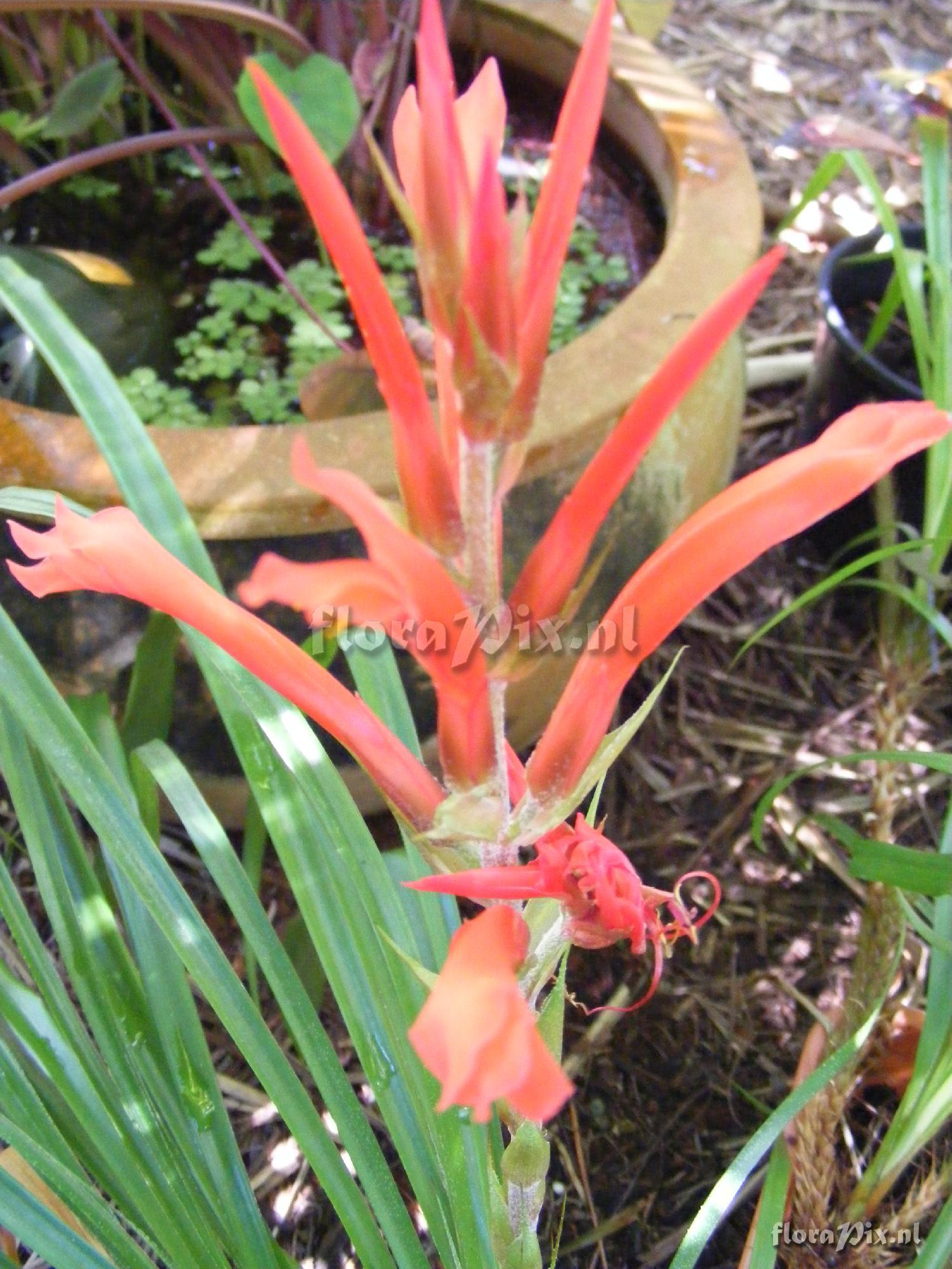- Opmerking: Uncle Derek (2013-02-19) - To me it looks like the Pitcairnia flammea complex with a possible link to P. corcovadensis hence your funny name. There are very few Pitcairnis hybrids so you should be able to key it out. If you are really keen I can send you descriptions so you can compare (Verzonden: brom-l@science.uu.nl)