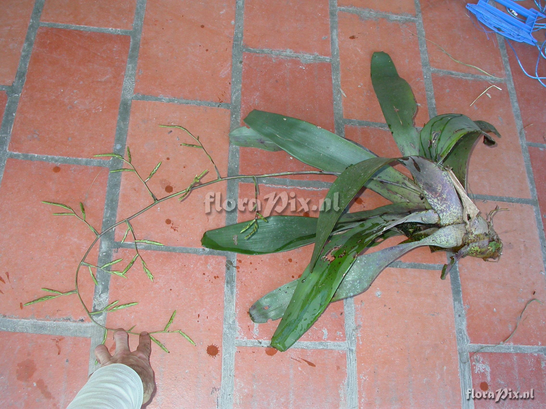 Verzamel locatie: Ecuador - Arco Iris; entrance to Podocarpus NP or road Loja - Zamora; trail towards river; montane moist forest. Fotograaf: Florian Werner Opmerking: Col.: Werner, F.A. 2236 (06-05-2007) - Det.: H. Luther (SEL) 2008 "leaves resembling R. monticola in coloration but tank lower, more open, of fewer and longer leaves (with massive (thick) base; infl. semi-pendant, ca. 1m long; rare species. Luther: R. tenuispica (Andre) M.A.Spencer & L.B.Sm.; Till (2011): spiculosa var. spiculosa (Griseb.) M.A. Spencer & L.B. Sm."