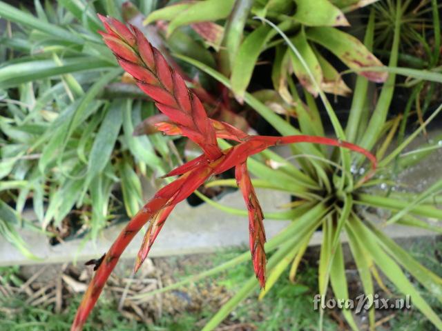(Geladen als: Tillandsia sp.) Verzamel locatie: Ecuador - 1,800m - Fotograaf: Atsushi Sato Opmerking: Close up of floral bracts. Some other photos are in DIe Bromelie 2009 (2/3) and 2011 (2). Determinatie: Opgelost