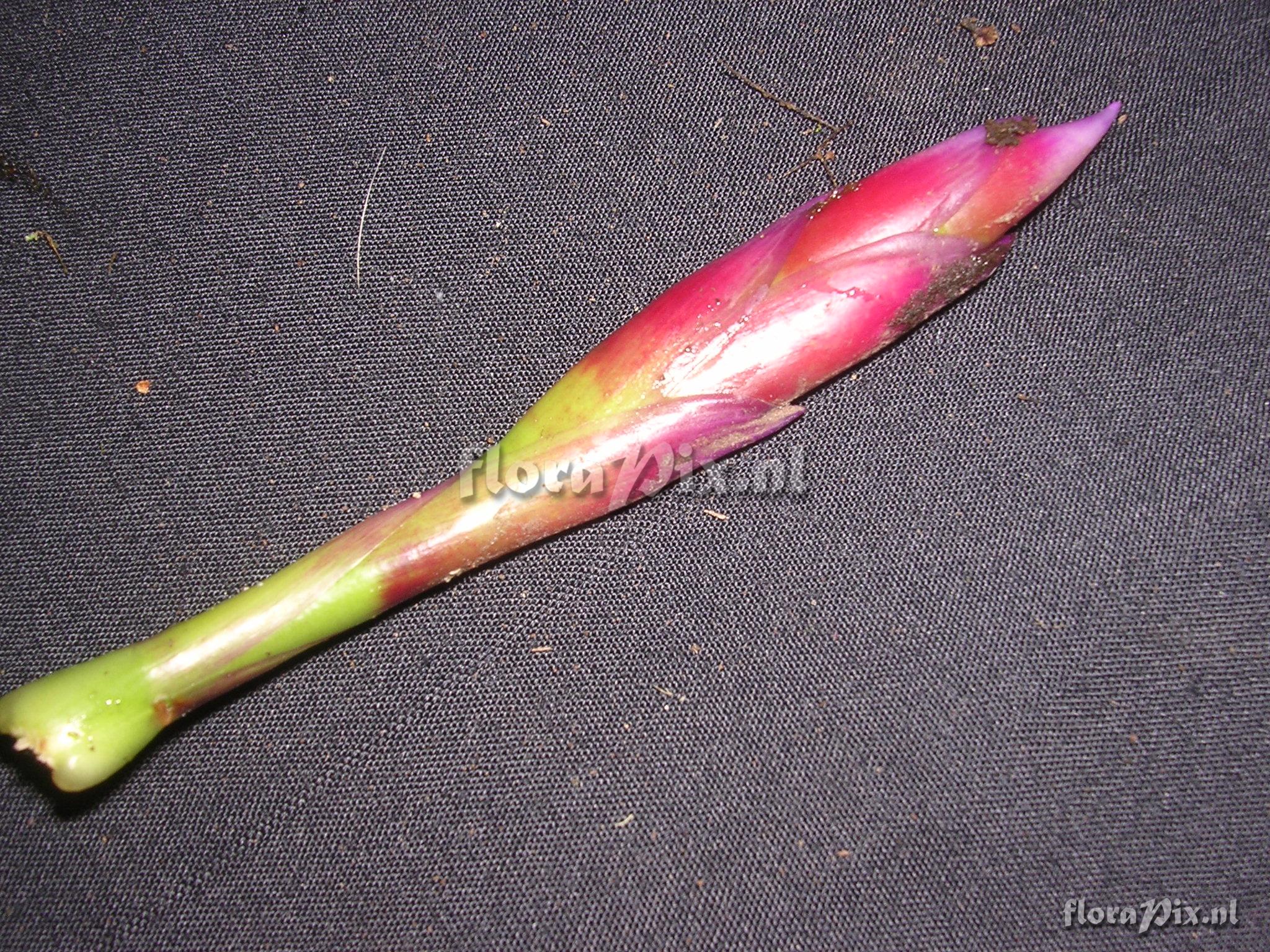 Verzamel locatie: Ecuador - Prov. of Zamora-Chinchipe, area of Estación Cientifica San Francisco (S 03°58´, W 79°04´ ), road Loja-Zamora, ca. 35 km from Loja; moist montane forest Fotograaf: Florian Werner Opmerking: Col.: Werner, F.A. 1593 (16-06-2005) - Det.: J.M. Manzanares "fallen with branch; flower bracts greenish yellow basally, than fadimng through bright red into (bluish) purple. Usually epiphytic and more compact."