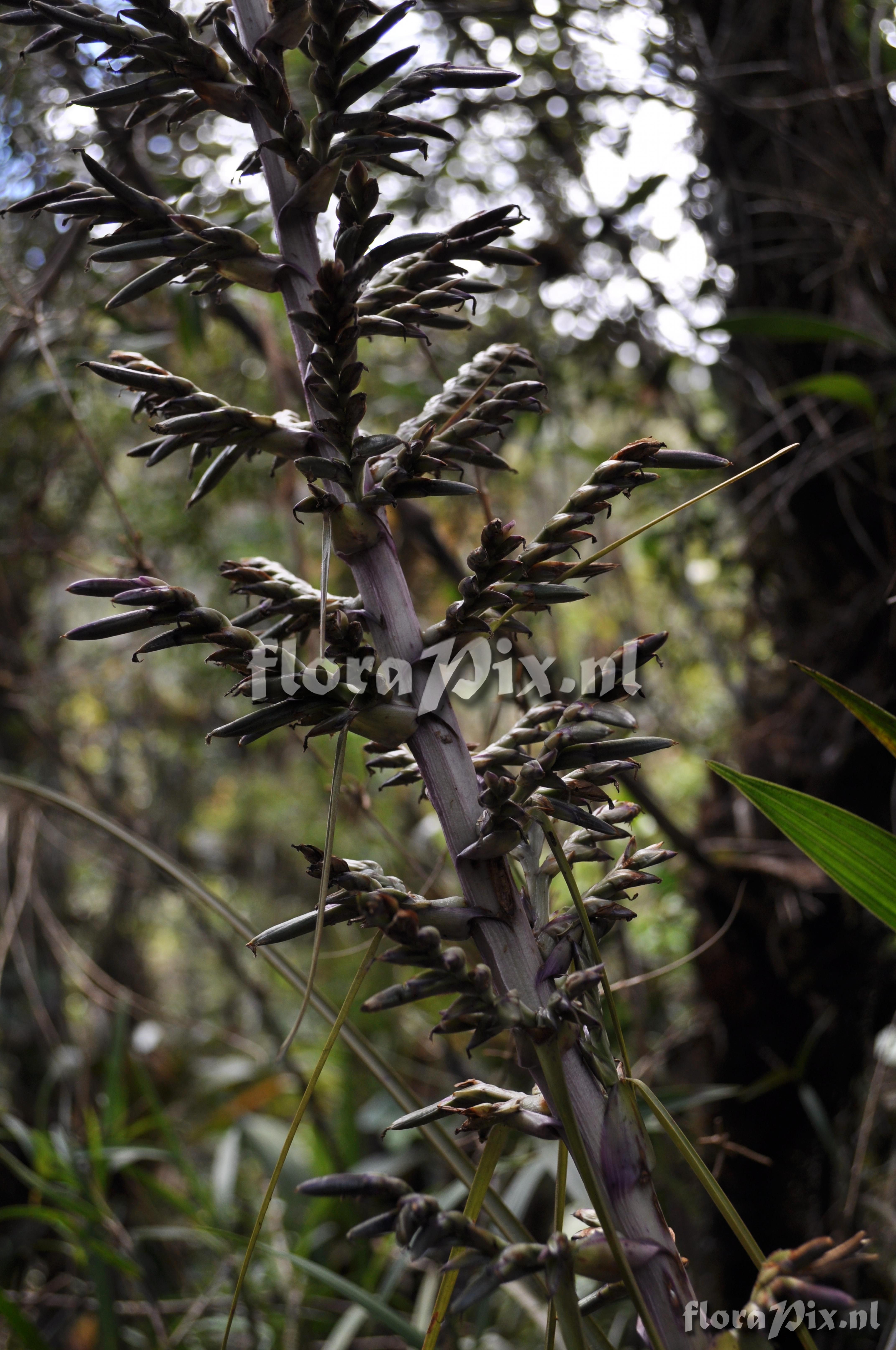 Verzamel locatie: Ecuador - Prov. of Zamora-Chinchipe, area of Estación Cientifica San Francisco (S 03°58´, W 79°04´ ), road Loja-Zamora, ca. 35 km from Loja; moist montane forest Fotograaf: Florian Werner Opmerking: (as Werner, F.A. 3112 ) "inf. semipendent, bracts magenta, corolla dark lila; plant growing terrestrially but usual an epiphyte, more common at 2200-2300 m, but also in ridge situations."