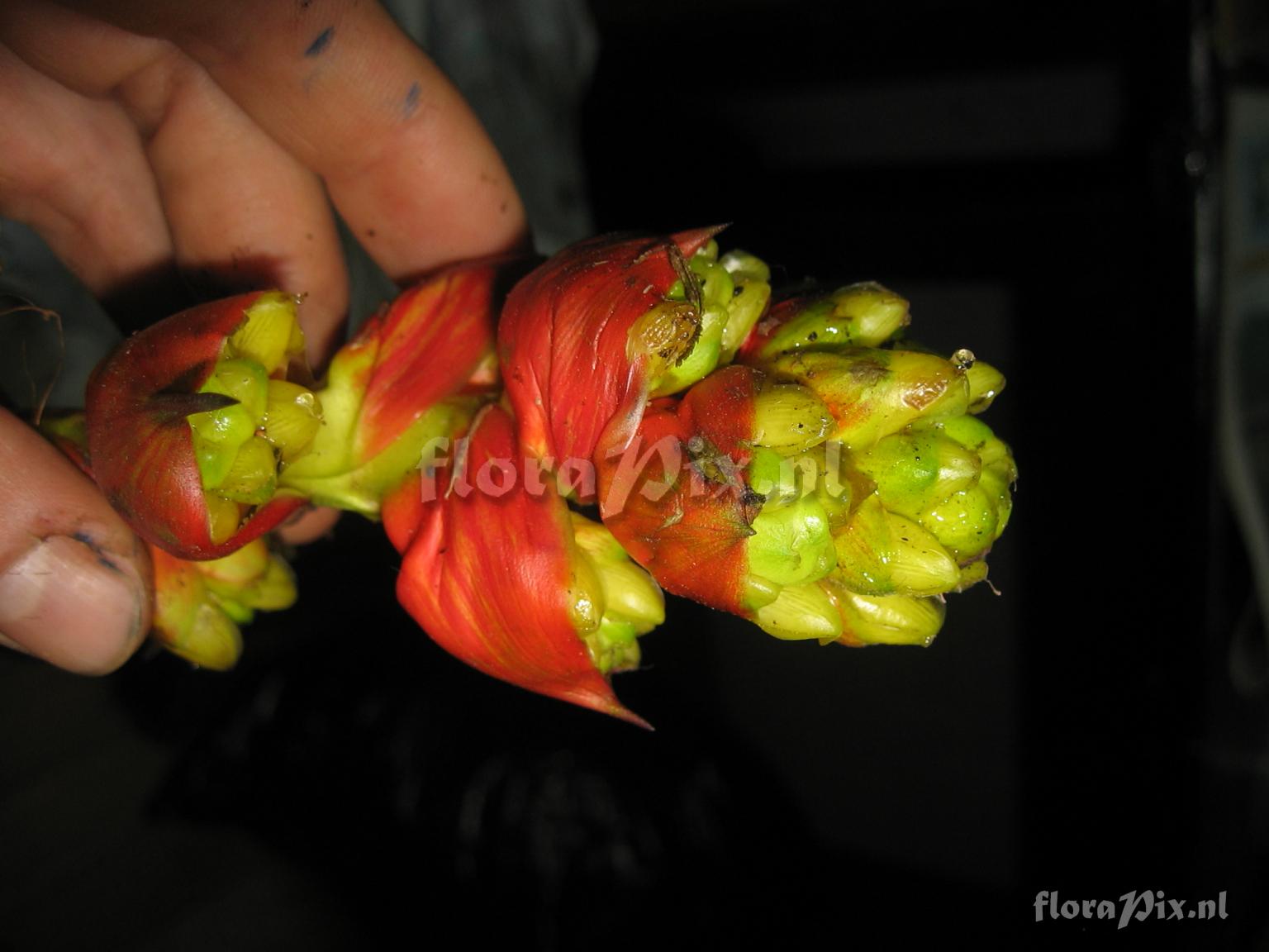 Locality: Ecuador - Las Orquídeas, Alto Nangaritza, Zamora-Chinchipe. Moist montane forest on slope of Tepui just E of Hostal Yankuam (trail to plots of D. Neill). Photographer: Florian Werner Note: Col.: Werner, F.A. 2606 (15-09-2008) - Det.: W. Till (U Vienna) "leaves 1.5 m and longer; infl. erect, peduncle and bracts bright red, flowers (which may never open widely since we have seen so many plants) bright light yellow."