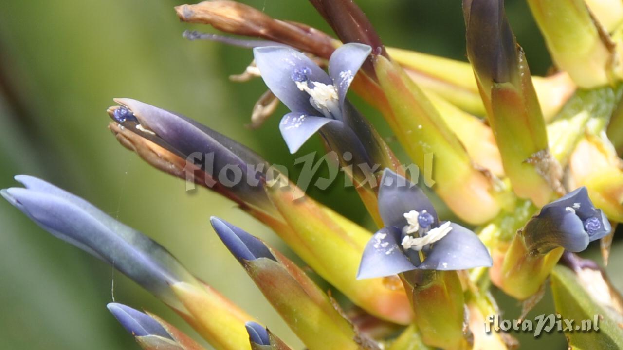 - This is certainly not Q. augusto-cooburgii. Reminds me much more in Ronnbergia brasiliensis or related Aechemea s. l. (e.g., A. fraseri) - Add Note: Wesley Schilling (2012-07-16) - My foliage is all green with light whitish banding on underside of foliage and foliage is tubular. Flowers are metalliac blue and not a lilac (?) color. Foliage is tubular in form and upright.