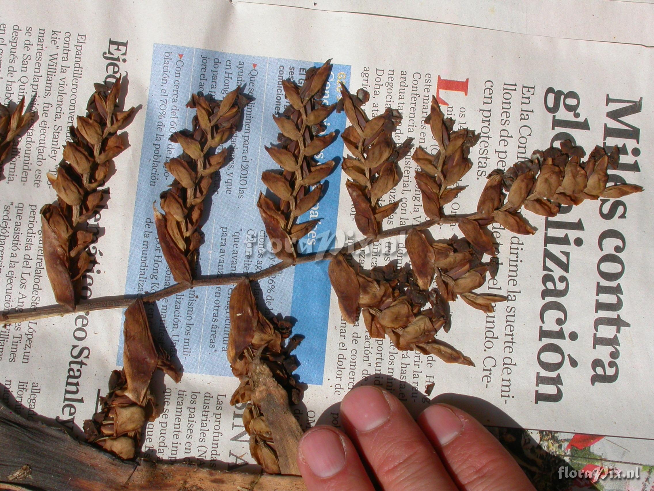 Locality: Ecuador - Zamora-Chinchipe Province; few km east of Pass (""El Tiro"") between Loja and Zamora; moist lower slope forest Photographer: Florian Werner Note: Col.: Werner, F.A. 2137 (09-12-2006) - Det.: W. Till (U Vienna) 2011 "3m above ground; infl. consp. plain (2-rowed), petals form nive plate above narrow, well-defined tube. "