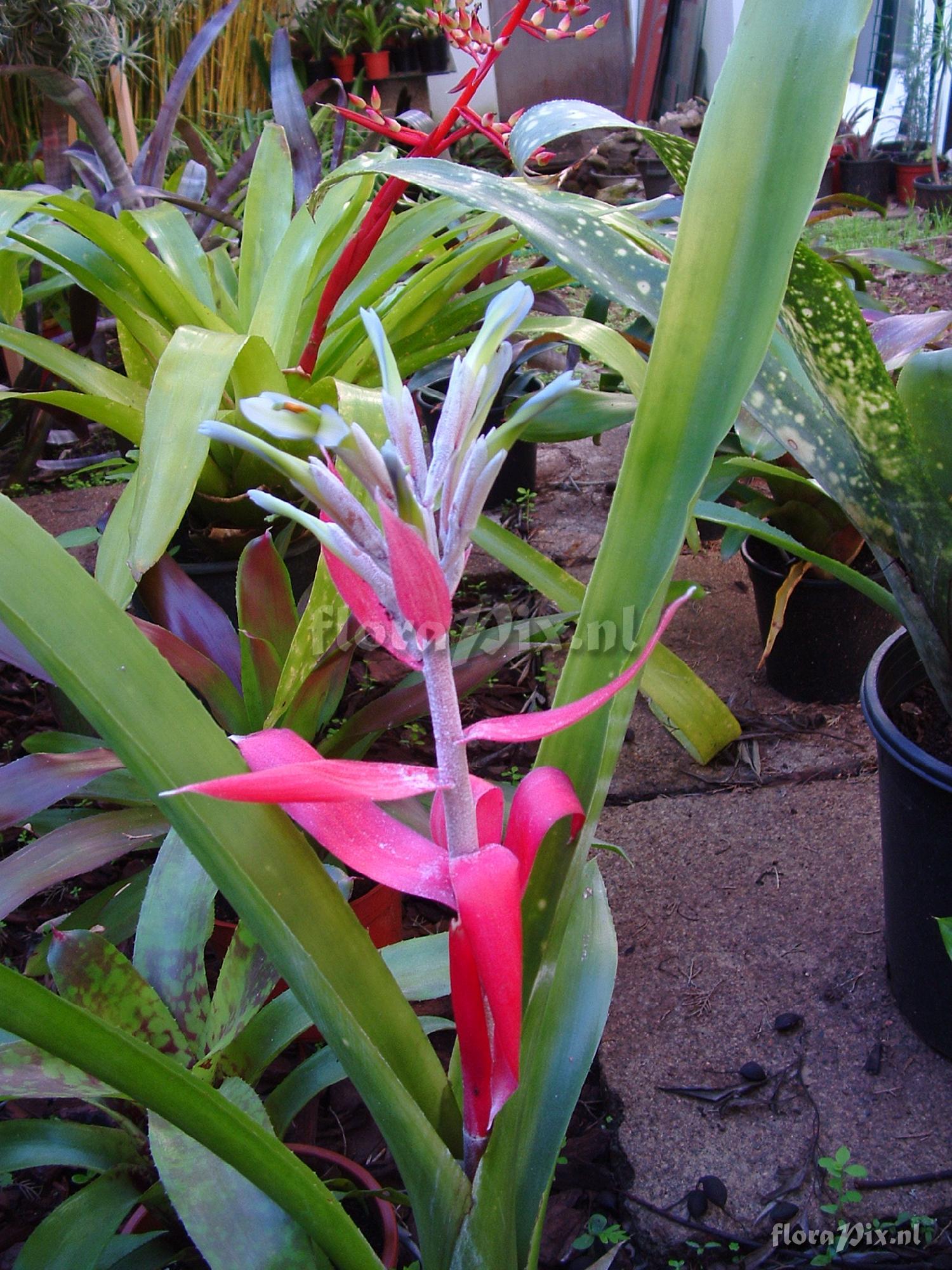 386 - Bromeliads (Garden) - 2007-04-26(Dimension: 1530 x 2050 pixels - Counter: 18160) Billbergia macrocalyx ![]() Photographer: Richard Martin Note: Help appreciated to indentify this Billbergia, it has extremly tubular stiff leaves and grows to 80cms tall.