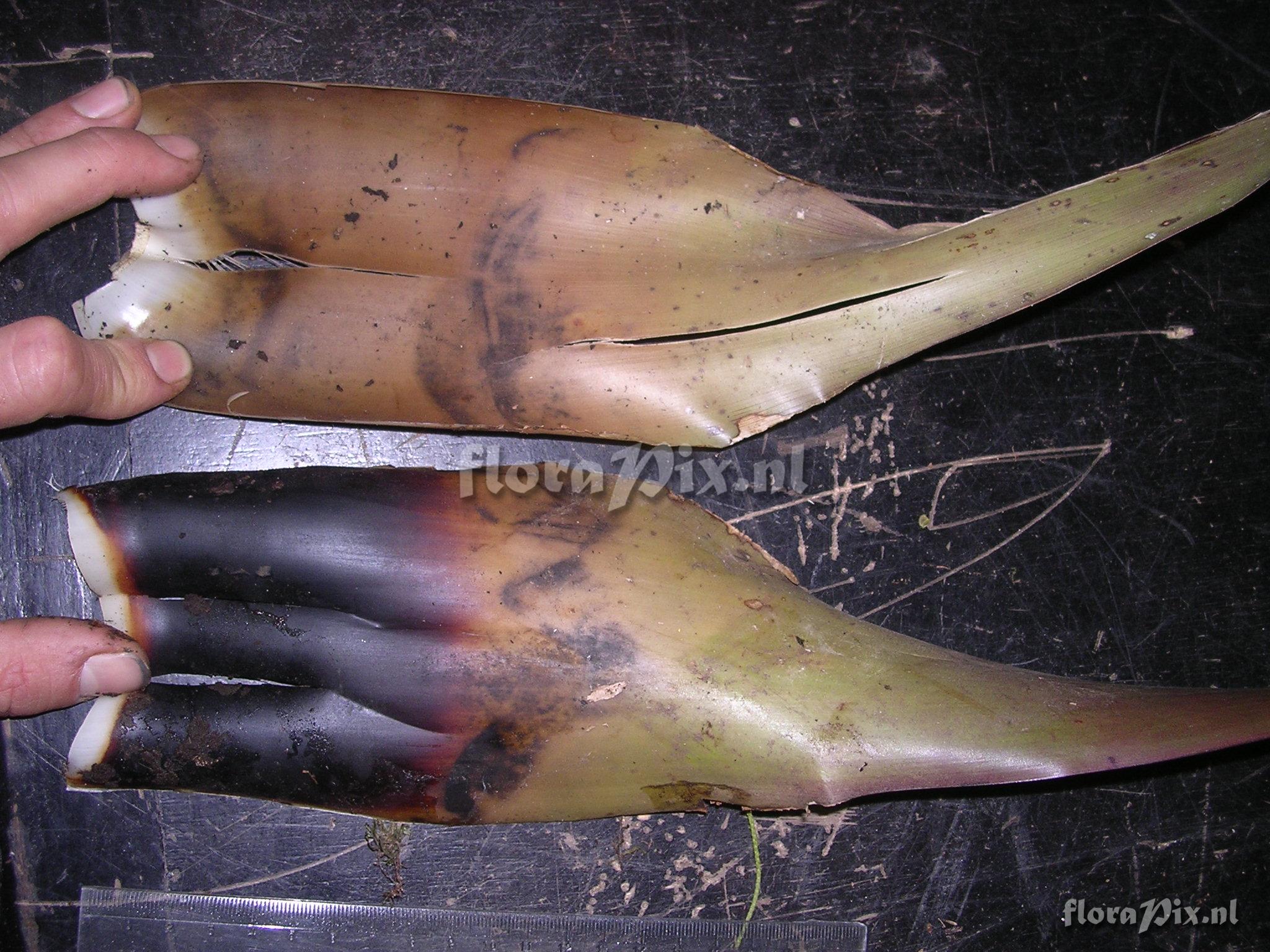 7927 - Bromeliads (Wild) - 2011-10-13(Dimension: 2078 x 1586 pixels - Counter: 8287) Guzmania ![]() Locality: Ecuador - Prov. of Zamora-Chinchipe, area of Estación Cientifica San Francisco (S 03°58“, W 79°04“ ), road Loja-Zamora, ca. 35 km from Loja; moist montane forest Photographer: Florian Werner Note: Col.: Werner, F.A. 1782 (20-09-2005) "bracts along stalk (incl. those embracing the infl.) dirty purple or - simply - green (just as abaxial young leaves), bracts subduing flowers light red with yellow tips. Petals fleshy, wool-white; uncommon. Common (and larger) around 1000m, Bombuscaro."
