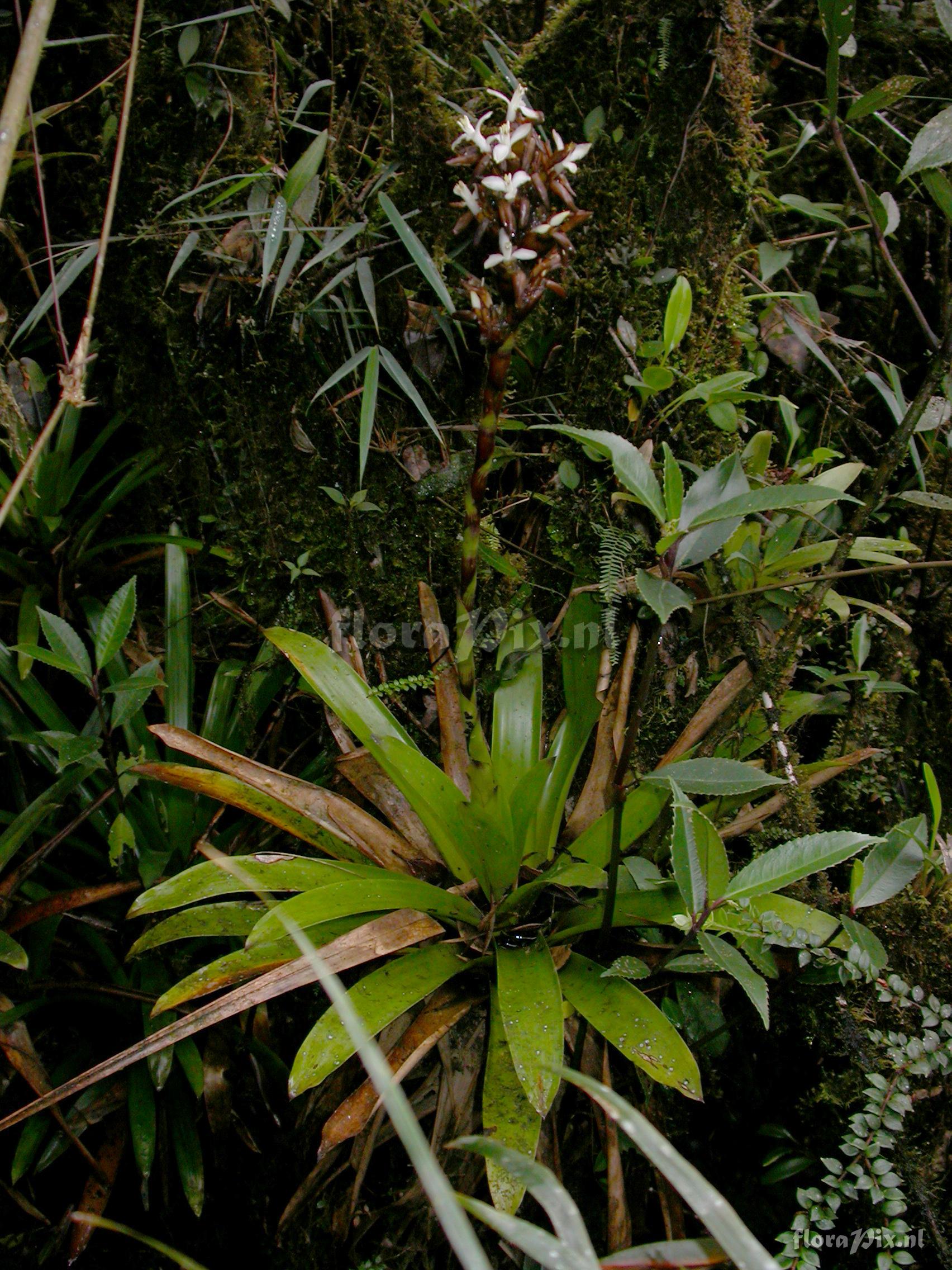 8029 - Bromeliads (Wild) - 2011-10-13(Dimension: 1734 x 2322 pixels - Counter: 10402) Guzmania sp. nov. ![]() Locality: Ecuador - Zamora-Chinchipe Province; few km east of Pass (""El Tiro"") between Loja and Zamora; very open, windswept and stunted ridge forest. Photographer: Florian Werner Note: (as Werner, F.A. 2145 ) - Det.: W. Till (U Vienna) 2011 "gracile species; flowers white."