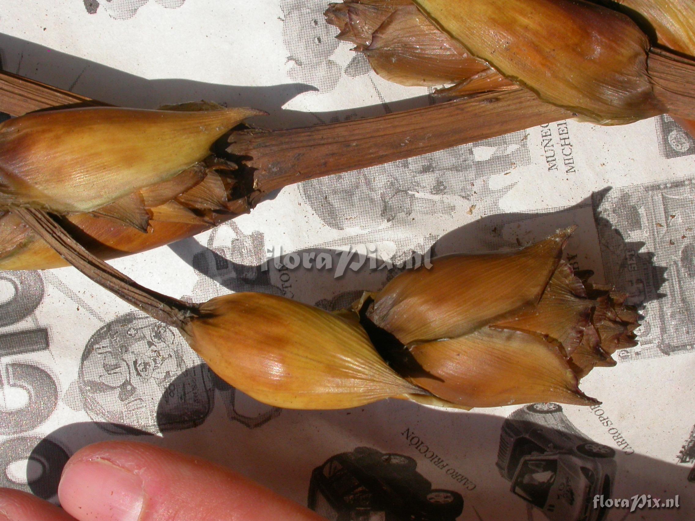 8158 - Bromeliads (Wild) - 2011-10-13(Dimension: 2302 x 1754 pixels - Counter: 11901) Guzmania atrocastanea H. Luther ![]() Locality: Ecuador - Prov. of Zamora-Chinchipe, area of Estación Cientifica San Francisco (S 03°58“, W 79°04“ ), road Loja-Zamora, ca. 35 km from Loja; moist montane forest Photographer: Florian Werner Note: Col.: Werner, F.A. 2069 (22-08-2006) - Det.: W. Till (U Vienna) 2011 "budding; infl. ca.1.2m long; bracts subduing flowers green with conspicuous red edge. "