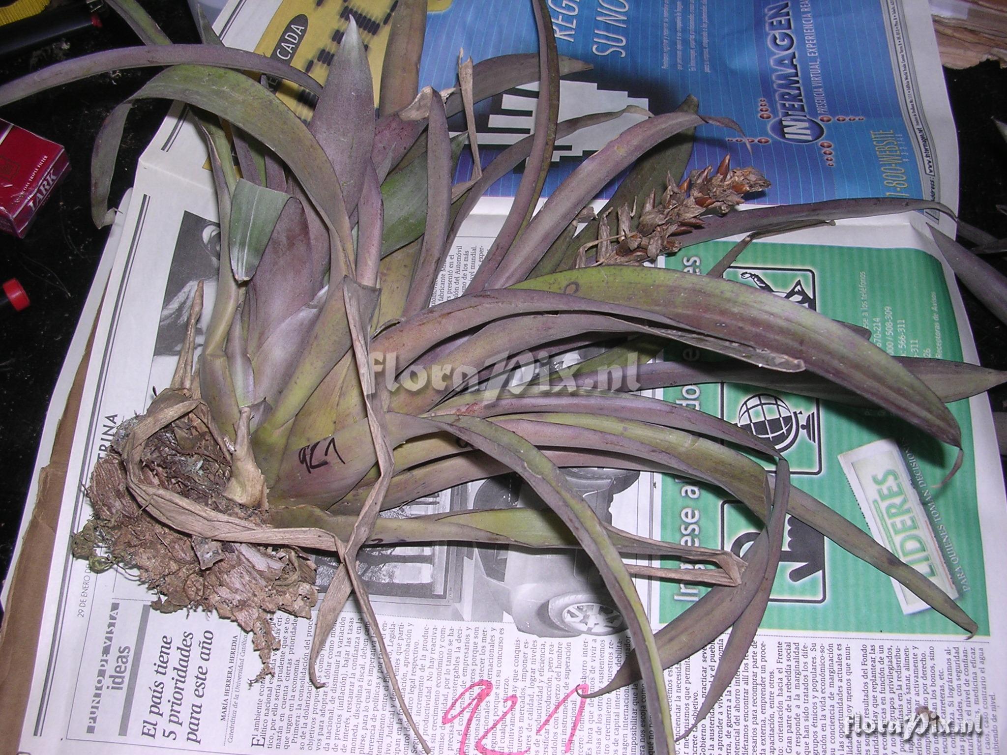 8830 - Bromeliads (Wild) - 2011-10-13(Dimension: 2078 x 1586 pixels - Counter: 10409) Guzmania monostachia (L.) Rusby ex Mez ![]() Locality: Ecuador - Loja Province; Reserva Laipuna (400-1400 m); off road Catacocha - Macarį, NW of Portachuelo (S 04°14 W 79°55'); premontane dry forest. Photographer: Florian Werner Note: Col.: Werner, F.A. 921 (30-03-2004) - Det.: J.M. Manzanares "Very common from ridge down to at least 1000 m; leaves waxy and usually pretty lila; only old and dry inflorescences present."