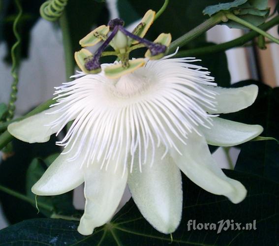 1664 - Passiflora (Garden) - 2006-09-17(Dimension: 597 x 550 pixels - Counter: 6411) Passiflora 'White Queen' ![]() Photographer: Ulrich Rothtauscher Note: Passiflora caerulea'CE'x Passiflora eichleriana I don't know it's the Original 'White Queen' because the bloom has coloured corona filiaments?
