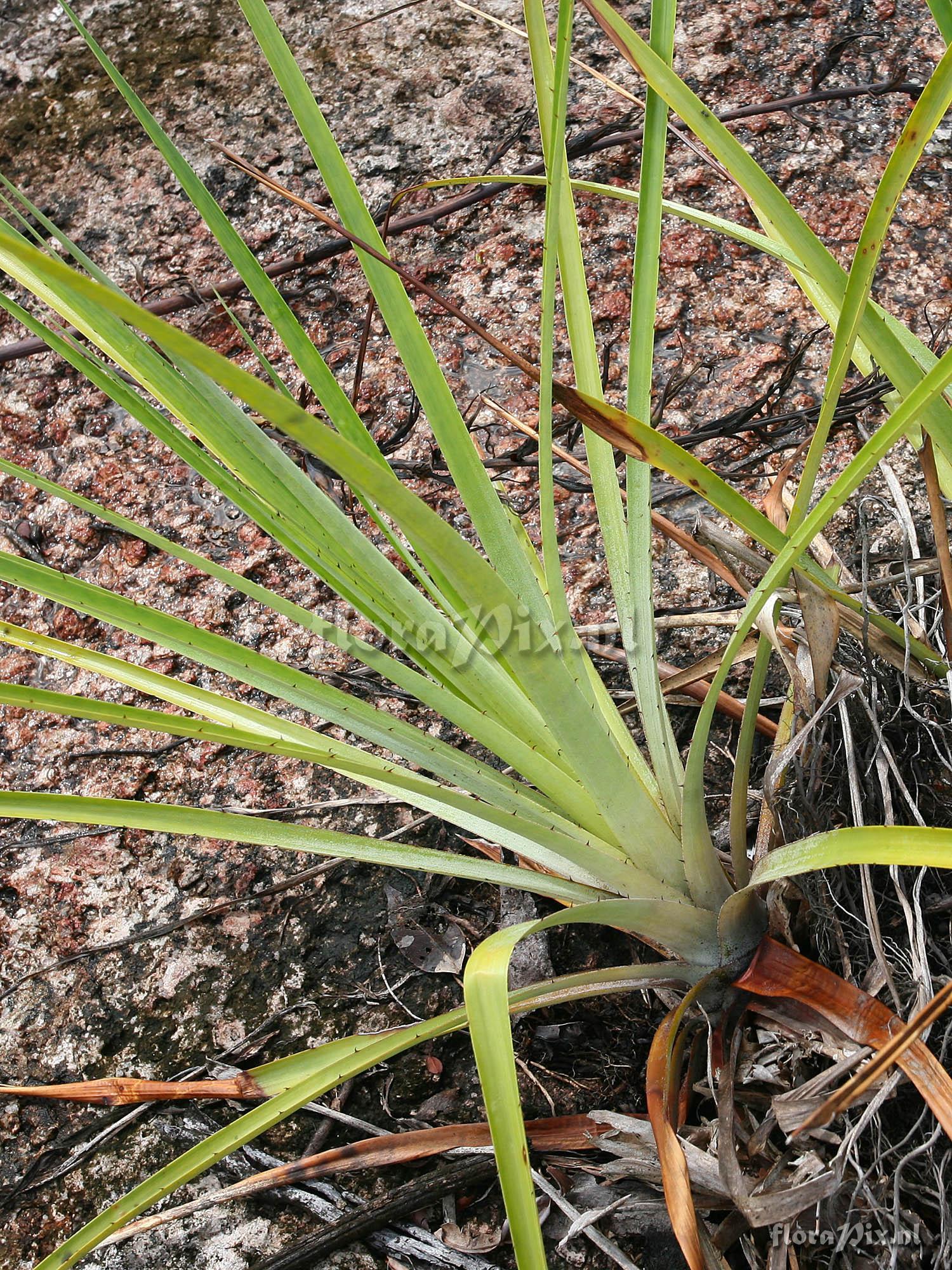 Note: This species was found growing in crevices on the granite outcrops along the Rio Sipapo and Rio Autana in the lowland (80m) region around Autana-Tepui. Additional habit and flowering images are available. This appears to be the same species identified as Pitcairnia bulbosa on page 379 of Franciso Oliva-Esteve's Bromeliads book but I'm not sure that is a good ID.