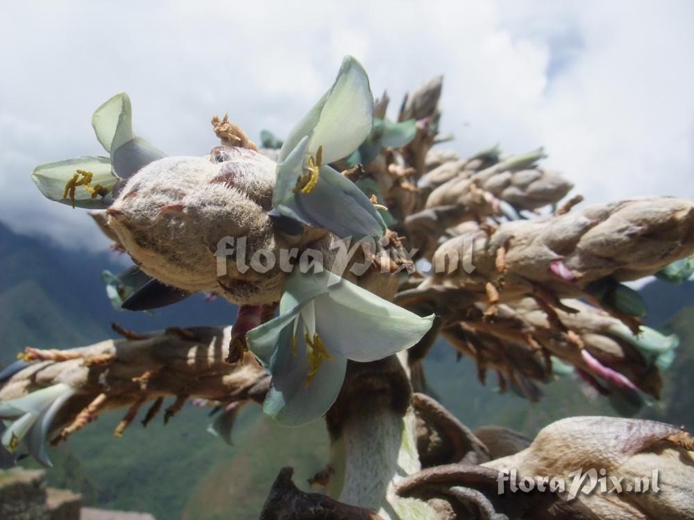 - Kan, you are right it is Puya weberbaueri. I have compared specimen from Machu Picchu with the type and they are quite similar. The bracts are loosing indument in the herbarium specimen, making it look different.