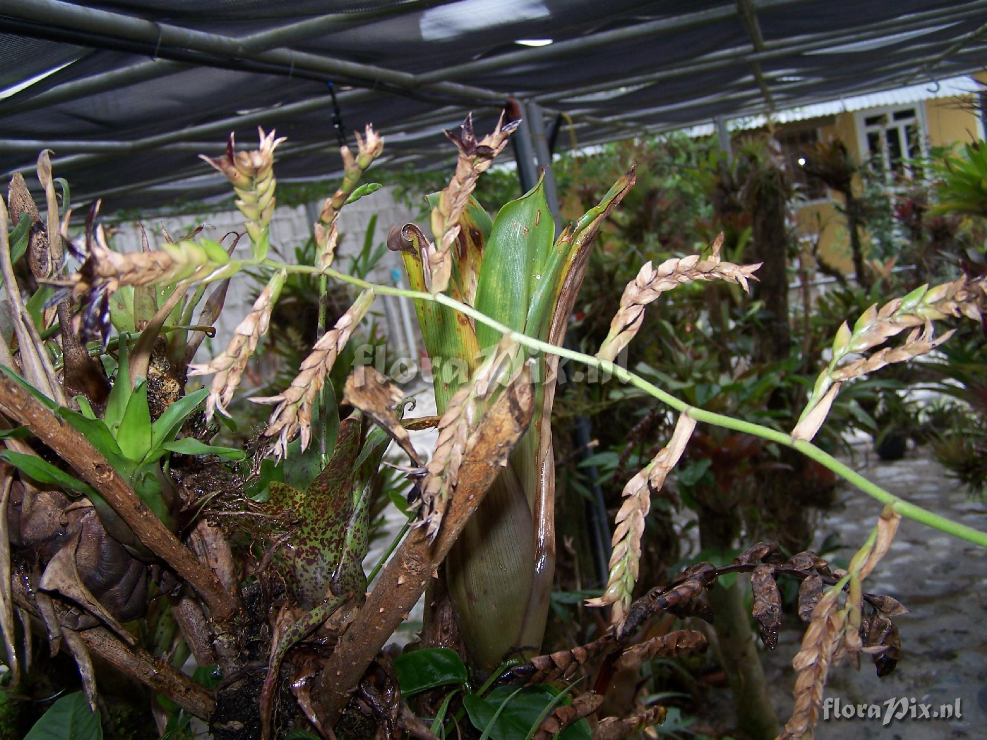 6732 - Bromeliads (Garden) - 2011-07-20(Dimension: 2030 x 1550 pixels - Counter: 13099) Racinaea sp. ![]() Locality: Ecuador - Loja - On the road to Zamora, 2500m in a shadow place. Photographer: Manfred Zingler Note: The inflorescence is about 60cm long. Identification: