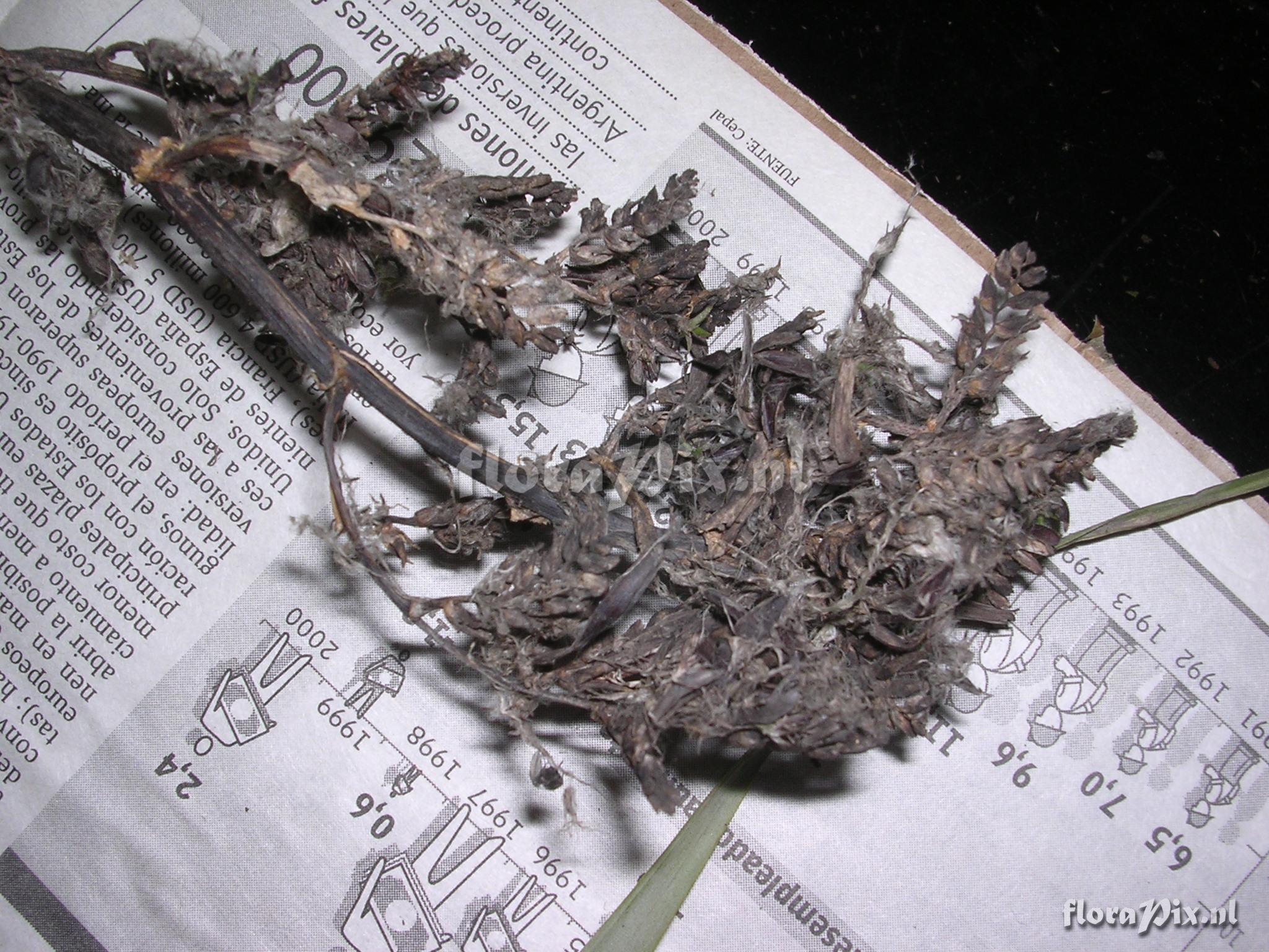 8836 - Bromeliads (Wild) - 2011-10-13(Dimension: 2078 x 1586 pixels - Counter: 7105) Racinaea multiflora var. tomensis (Benth.) M.A.Spencer & L.B. Sm. ![]() Locality: Ecuador - Loja Province; Reserva Laipuna (400-1400 m); off road Catacocha - Macarį, NW of Portachuelo (S 04°14 W 79°55'); premontane dry forest. Photographer: Florian Werner Note: Col.: Werner, F.A. 925 (30-03-2004) - Det.: W. Till (U Vienna) 2011 "Leaves bent far downward and conspicuously yellowish; infl. erect, old and dry all of them."