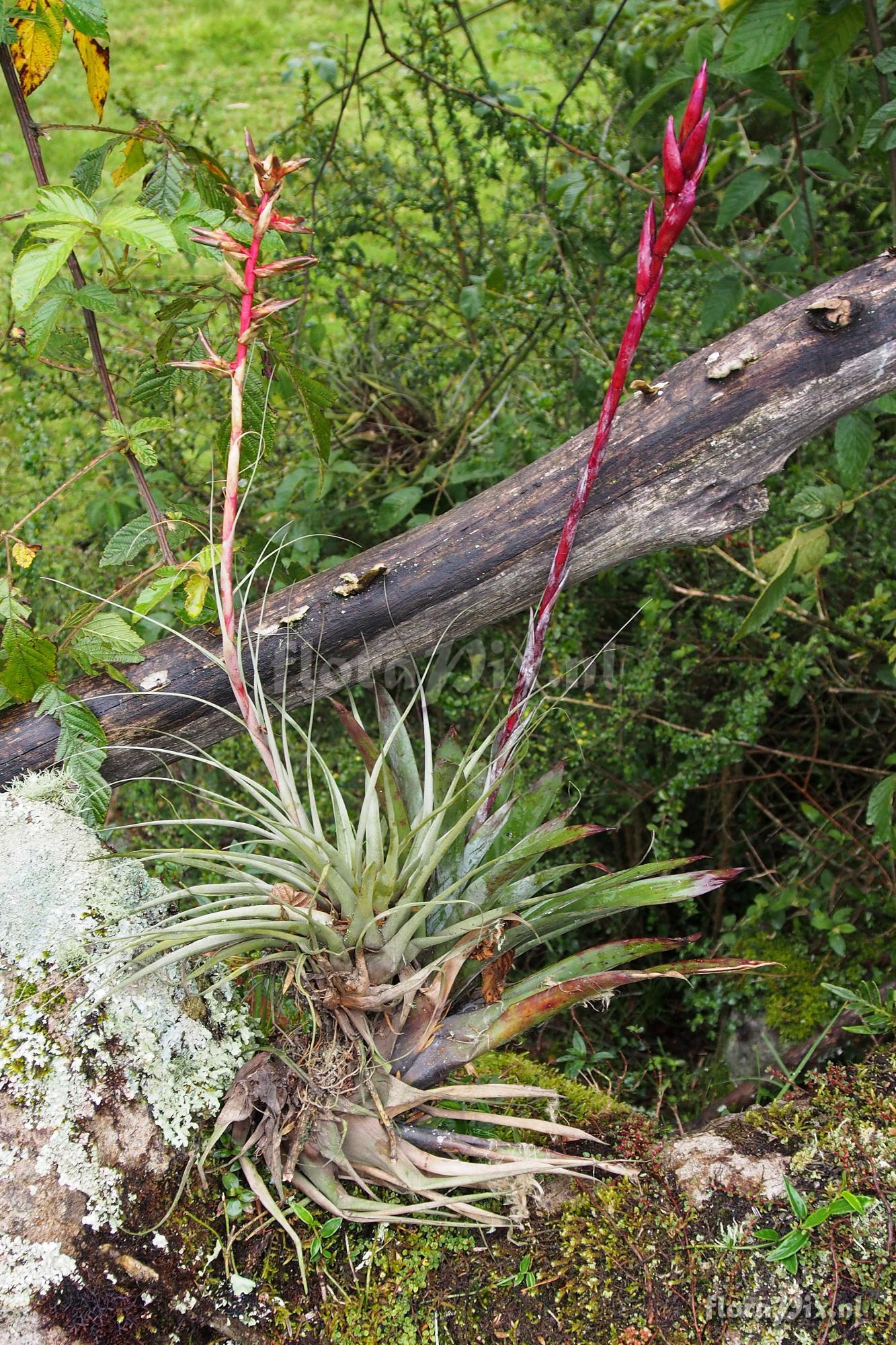 13804 - Bromeliads (Wild) - 2018-03-24(Dimension: 1363 x 2050 pixels - Counter: 7167) Tillandsia oroyensis ![]() Locality: Ecuador, Azuay Province - Not far from Banos (Cuenca) on road to Soldados at an elevation of 2800 meters. Also the last picture of one with seed pods is from 2900 meters 6.5 km south of Cumbe on Hwy 35 growing as a terrestrial on a rock hillside. Photographer: Jerry Raack Note: Here we a plant post anthesis with see pods growing at an elevation of 2880 meters along with Tillandsia stenoura (or maybe Tillandsia bongarana?). It was on a tree limb growing epiphytically, and was taken down to photograph it better. Identification: