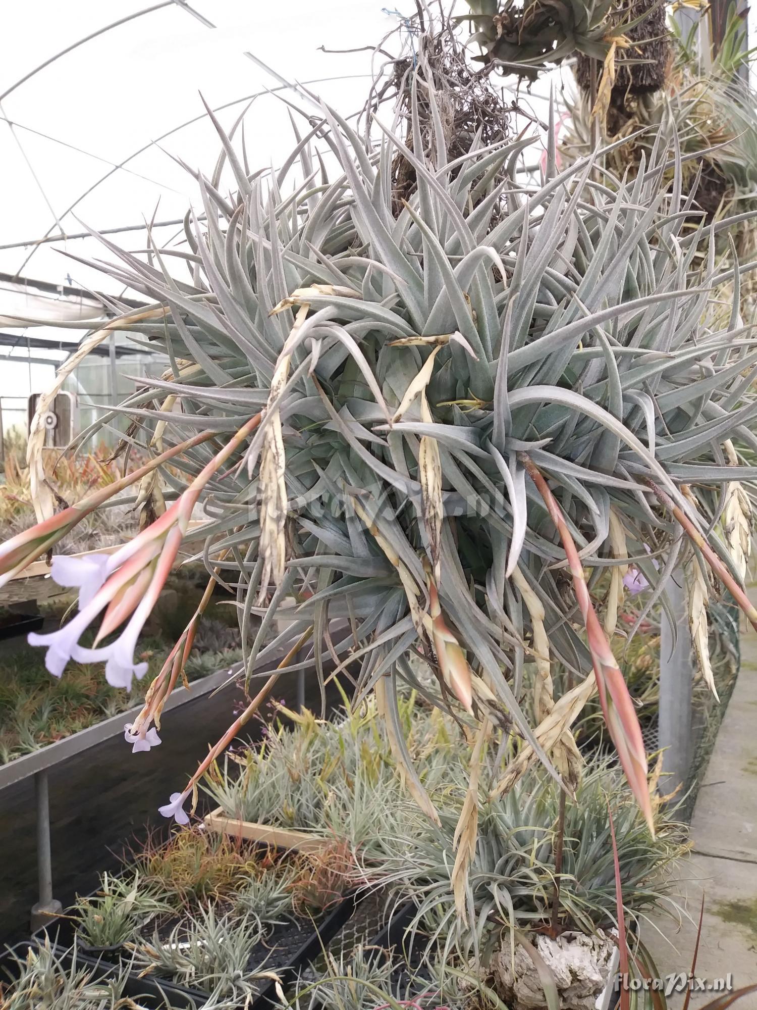 - Greg, looks like a hybrid. Was there any origin on it? (Sent: mailToList) - Note: Greg Dauss (2019-04-12) - Could this possibly be a cross between T. lorentziana and T. tafiensis or T.xiphiodes and the blue flower form of T. lorentziana? The plant was obtained from Kiff in the early 80\'s. (Sent: brom-l@science.uu.nl)