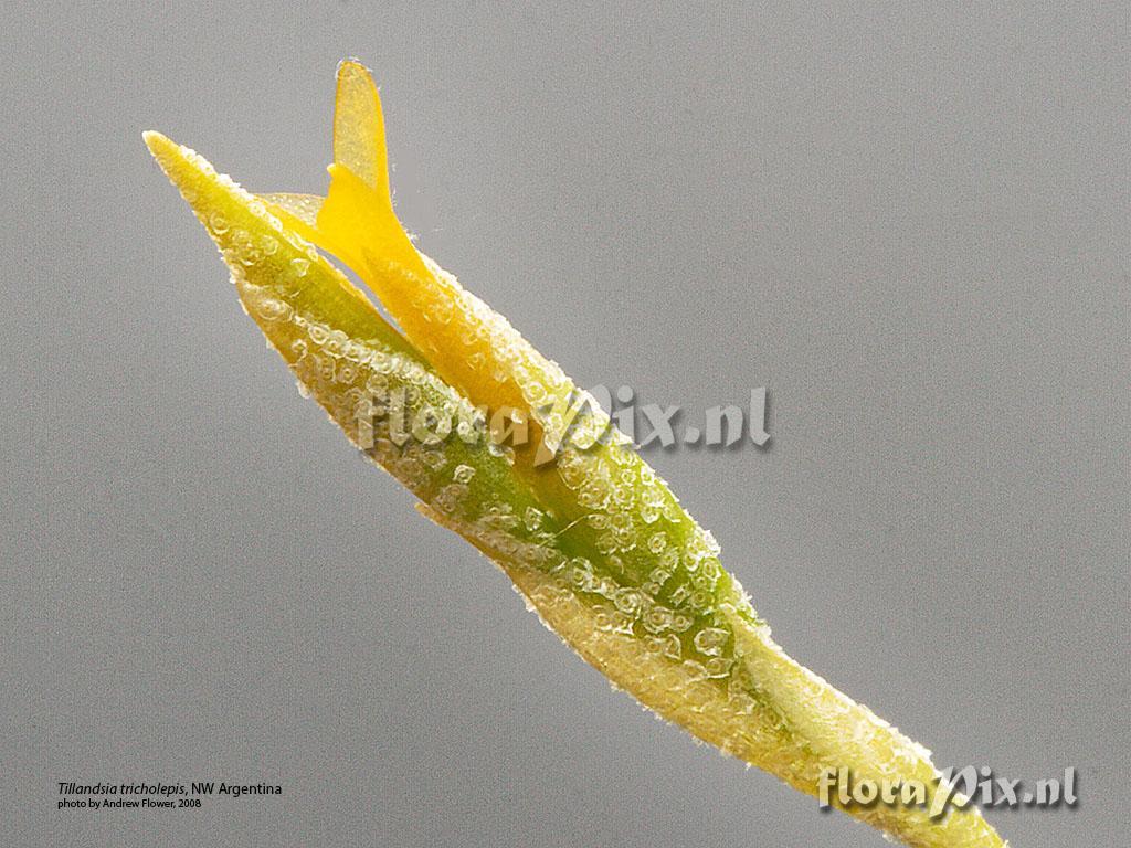 17615 - Bromeliads (Garden) - 20220618(Dimension: 1054 x 818 pixels - Counter: 9418) Tillandsia tricholepis ![]() Locality: Tucuman, Argentina - 12k west of Comcepcion.. Photographer: Andrew Flower Note: Grown in New Zeakand from seed collected near Concepcion in 2001, first flowering 2008. (Sent: )