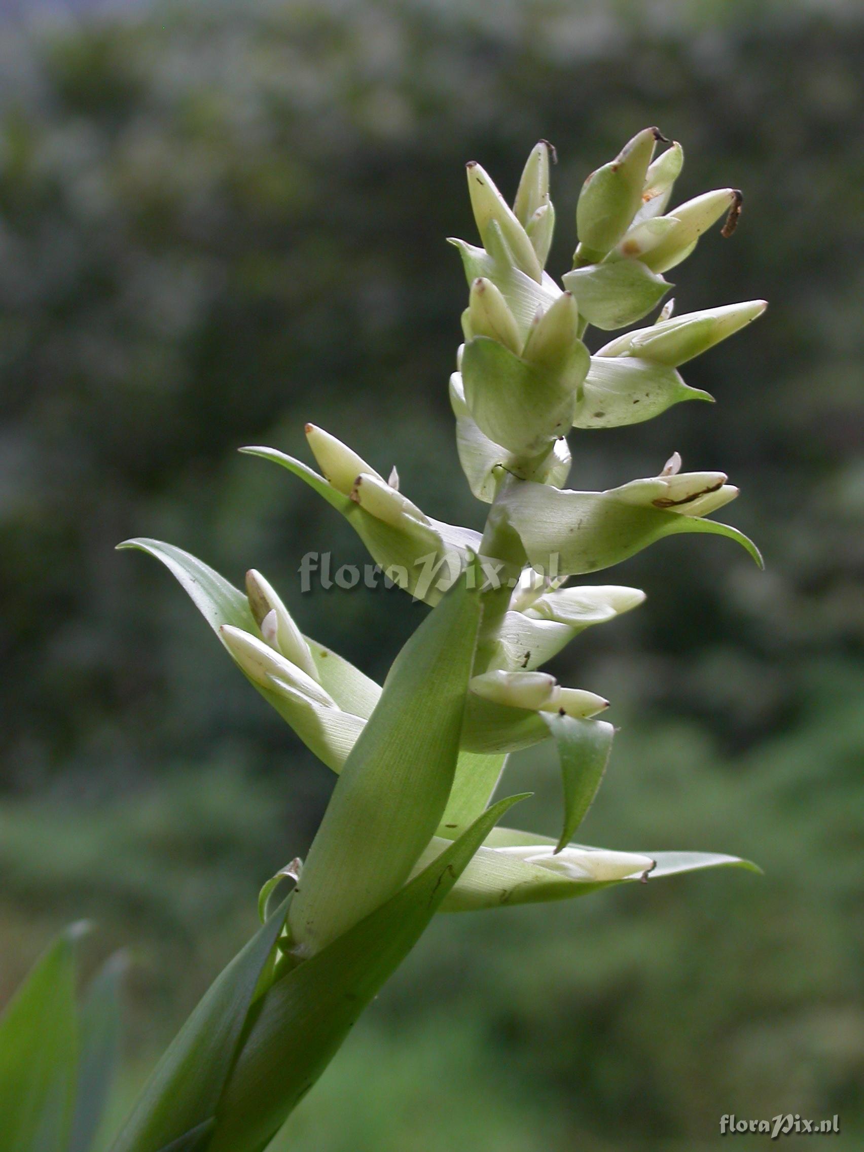 7954 - Bromeliads (Wild) - 2011-10-13(Dimension: 1734 x 2322 pixels - Counter: 11257) Tillandsia biflora R. & P. ![]() Locality: Ecuador - Prov. of Zamora-Chinchipe, area of Estación Cientifica San Francisco (S 03°58´, W 79°04´ ), road Loja-Zamora, ca. 35 km from Loja; moist montane forest Photographer: Florian Werner Note: Col.: Werner, F.A. 2406 (01-03-2008) - Det.: H. Luther (SEL) 2008 "petals mild lila but more inensely colored further down the narrow tube; bracts and peduncle light green as leaves; shade form with spotlessly light green leaves; leaves softer than in any other local species."