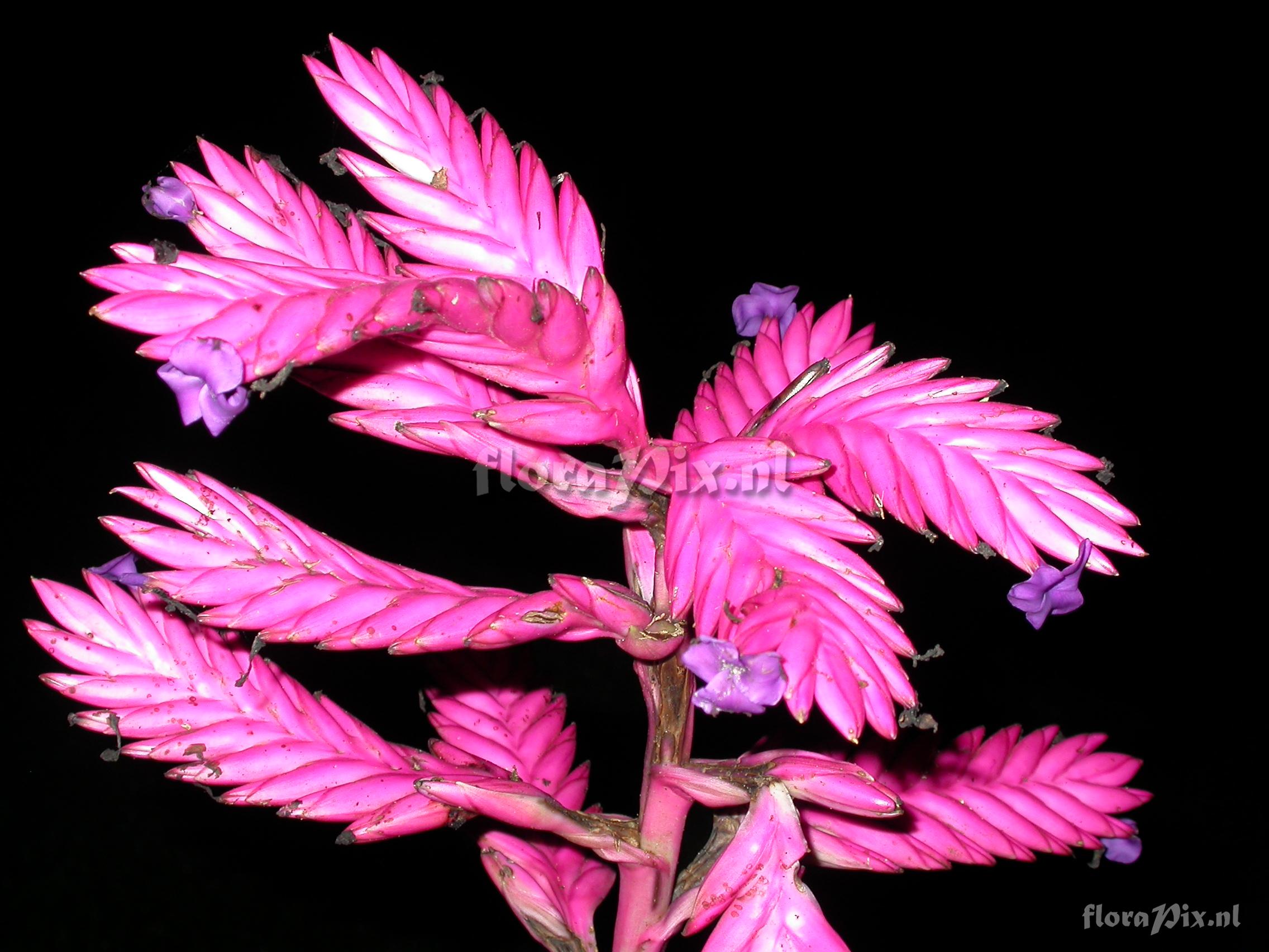 7959 - Bromeliads (Wild) - 2011-10-13(Dimension: 2302 x 1754 pixels - Counter: 9573) Tillandsia platyrhachis ![]() Locality: Ecuador - Prov. of Zamora-Chinchipe, area of Estación Cientifica San Francisco (S 03°58´, W 79°04´ ), road Loja-Zamora, ca. 35 km from Loja; moist montane forest Photographer: Florian Werner Note: Col.: Werner, F.A. 2404 (29-02-2008) - Det.: F.A. Werner "uncommon at ECSF; apparently not reaching higher than 1900m; entire inflorescence electric pink; petals with large, roundish lobes and lila; 3rd individual flowering in sec. forest, midstory currently (1820m)"
