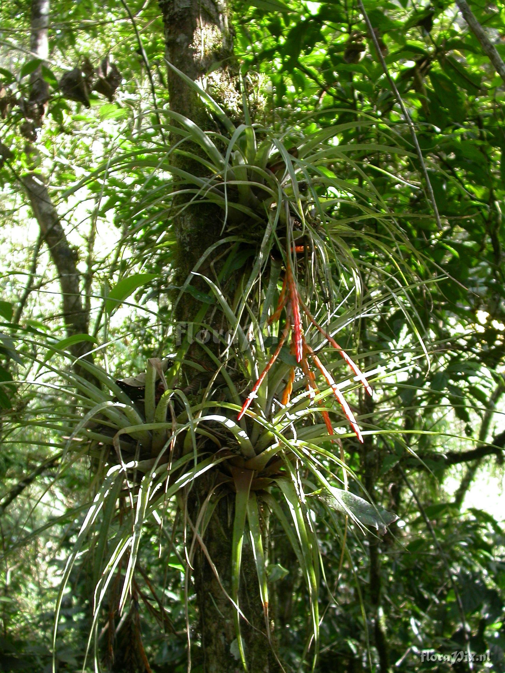 8595 - Bromeliads (Wild) - 2011-10-13(Dimension: 1734 x 2322 pixels - Counter: 13818) Tillandsia barthlottii Rauh ![]() Locality: Ecuador - Prov. of Zamora-Chinchipe, area of Estación Cientifica San Francisco (S 03°58´, W 79°04´ ), road Loja-Zamora, ca. 35 km from Loja; moist montane forest Photographer: Florian Werner Note: Col.: Werner, F.A. 2622 (28-09-2008) - Det.: W. Till (U Vienna) 2011 petals wool-white, bracts bright orange. 7 cm long lumbricid worm in leaf axil (present to Doro).