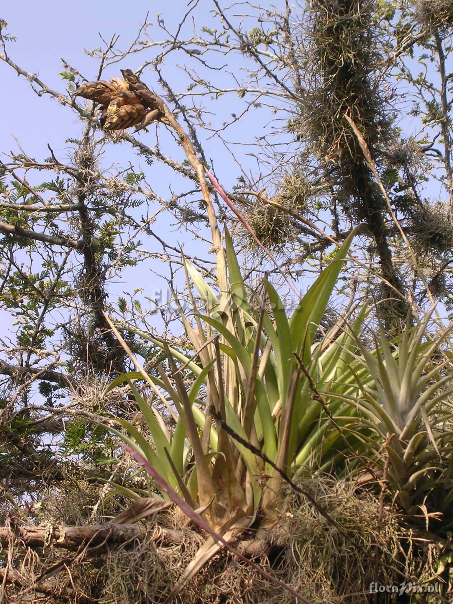 8705 - Bromeliads (Wild) - 2011-10-13(Dimension: 1566 x 2098 pixels - Counter: 11320) Tillandsia lajensis L.B. Sm. ![]() Locality: Ecuador - Province of Pichincha, Bosque Protector Jerusalén, close to Guayllabamba (S 00° 00', W 078° 21'); interandean dry forest (550 mm prec./an.) monodominated by Acacia macracantha. Photographer: Florian Werner Note: Col.: Werner, F.A. 833 (02-03-2004) - Det.: J.M. Manzanares flowers purple, bracts yellow.