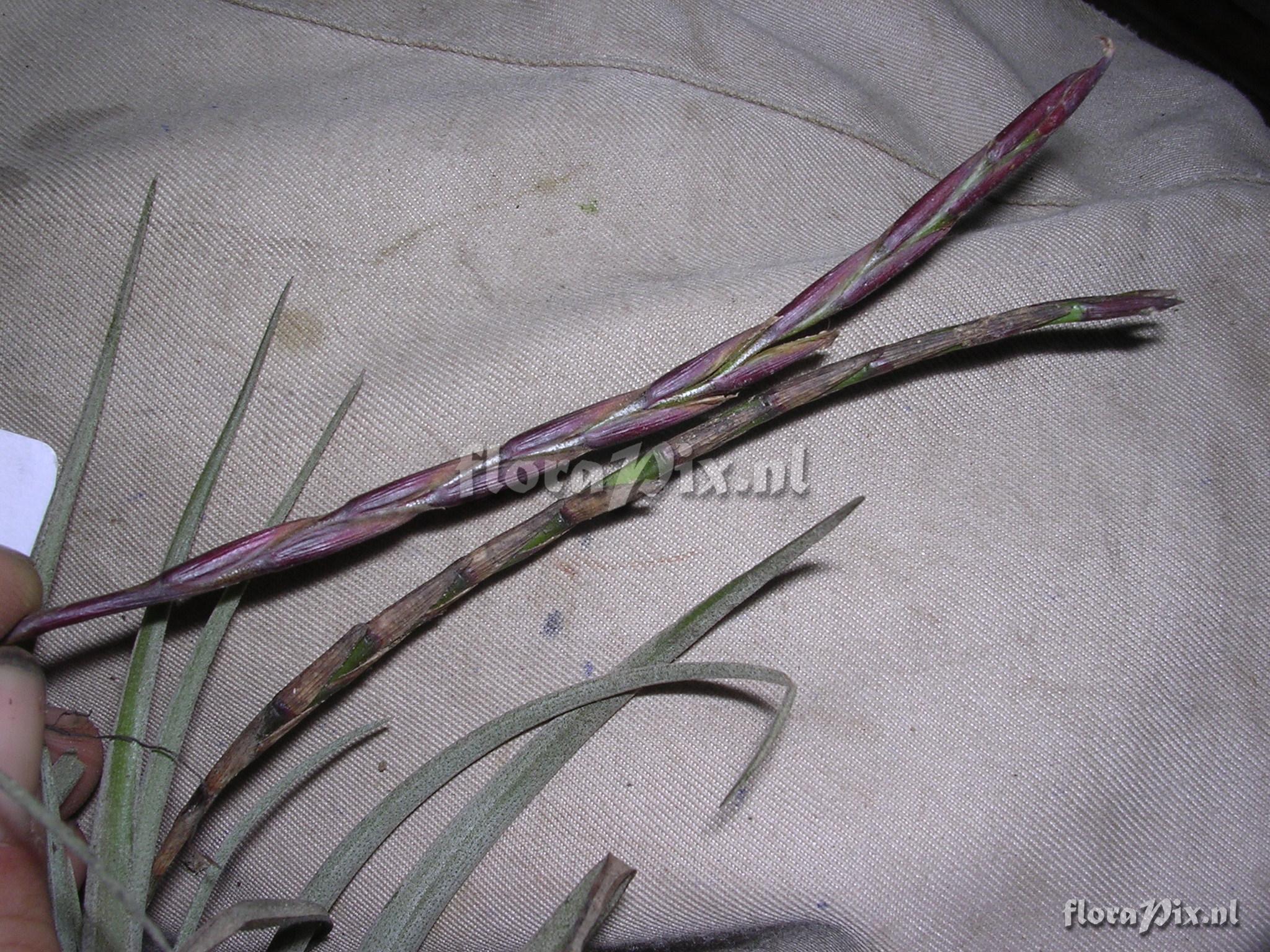 8792 - Bromeliads (Wild) - 2011-10-13(Dimension: 2078 x 1586 pixels - Counter: 7620) Tillandsia trichoglochinoides C. Presl ![]() Locality: Ecuador - Loja Province; Reserva Laipuna (400-1400 m); off road Catacocha - Macará, NW of Portachuelo (S 04°14 W 79°55'); premontane dry forest. Photographer: Florian Werner Note: Col.: Werner, F.A. 924 (30-03-2004) - Det.: J.M. Manzanares "Common; flowers with short tubes only and large white micky-mouse petals."