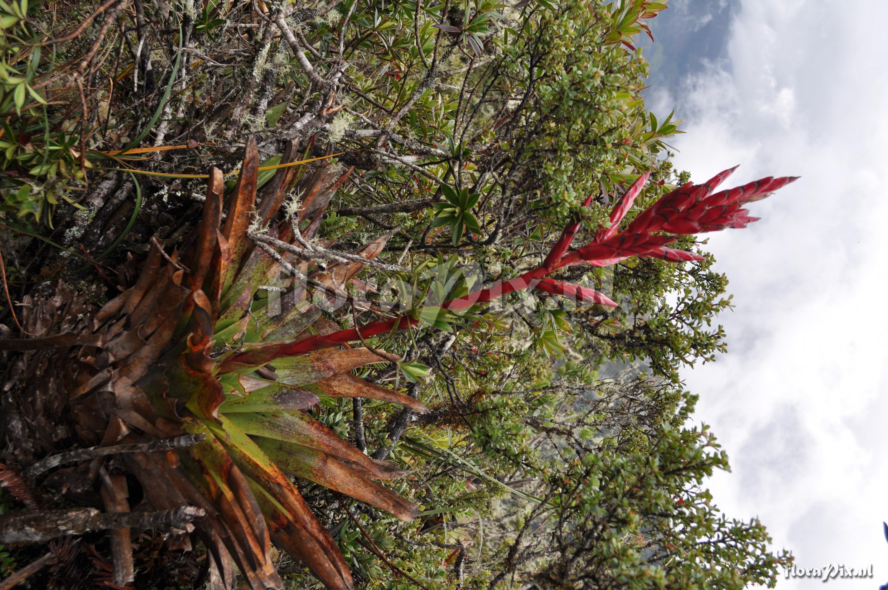 9117 - Bromeliads (Wild) - 2011-10-13(Dimension: 2878 x 4338 pixels - Counter: 10475) Tillandsia aff. fendleri ![]() Locality: Ecuador - Province of Loja, Parque Nacional Podocarpus, Cajanuma Photographer: Florian Werner Note: Col.: Werner, F.A. 3123 (09-04-2011) - Det.: F.A. Werner plant terrestrial, but more commonly seen epiphytic. Deep, high storage-capacity- tank. Leaves consp. waxy abaxially, tips spiky-acute. Pedicel & bracts intense purplish dark red, flowers purple apparently (según Nelson). CF. fw3115!