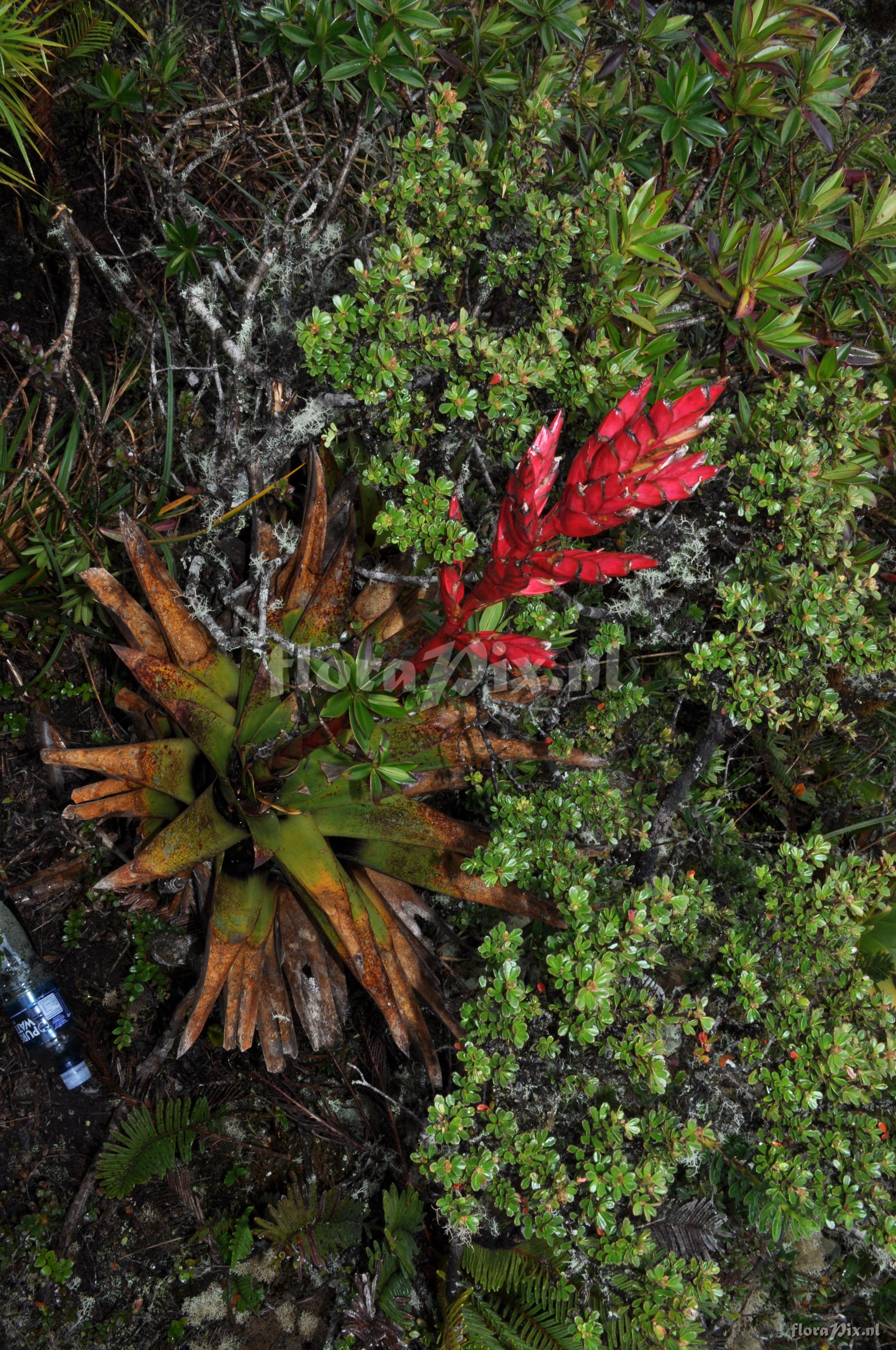 9120 - Bromeliads (Wild) - 2011-10-13(Dimension: 2878 x 4338 pixels - Counter: 10154) Tillandsia aff. fendleri ![]() Locality: Ecuador - Province of Loja, Parque Nacional Podocarpus, Cajanuma Photographer: Florian Werner Note: Col.: Werner, F.A. 3123 (09-04-2011) - Det.: F.A. Werner plant terrestrial, but more commonly seen epiphytic. Deep, high storage-capacity- tank. Leaves consp. waxy abaxially, tips spiky-acute. Pedicel & bracts intense purplish dark red, flowers purple apparently (según Nelson). CF. fw3115!