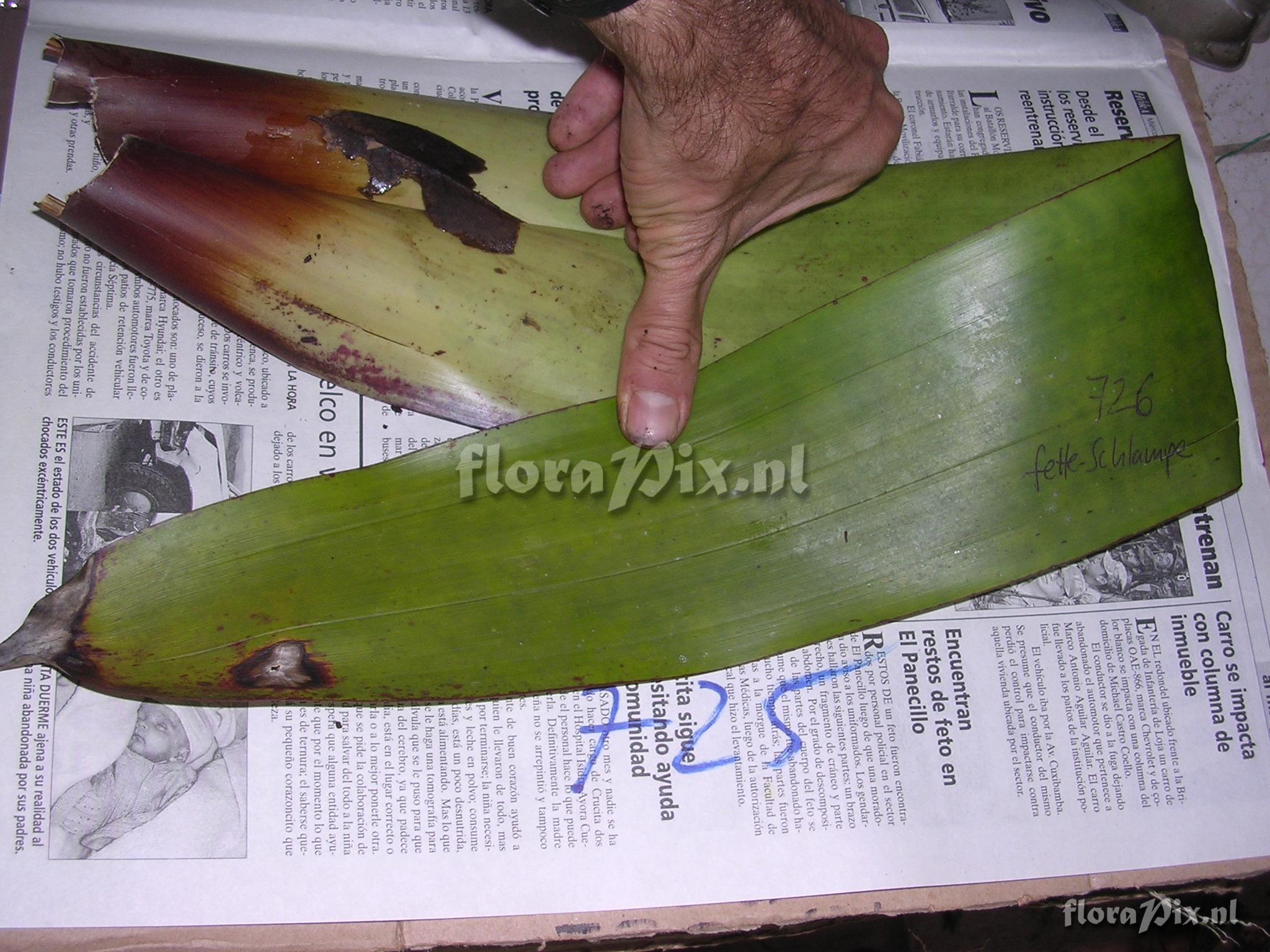 9255 - Bromeliads (Wild) - 2011-10-13(Dimension: 2078 x 1586 pixels - Counter: 13322) Tillandsia aff. tovariensis ![]() Locality: Ecuador - Prov. of Zamora-Chinchipe, area of Estación Cientifica San Francisco (S 03°58´, W 79°04´ ), road Loja-Zamora, ca. 35 km from Loja; moist montane forest Photographer: Florian Werner Note: Col.: Werner, F.A. 726 (27-12-2003) "Big, wide fucker. Common in canopy above Sabanilla but not noticed at ECSF forest. Likes it wet? Erect and branched infl. c. 1.5 m long and (in old state) superficially resembling Till. tovariensis. Leaves yellowish green with violet-red tips. Observed in flower 14.1.04: flowers cf. Guzm. large and white; 1st and 2nd degree flower stalk plus bracts on them bright red; 3rd deg. stalks with all borne parts white."