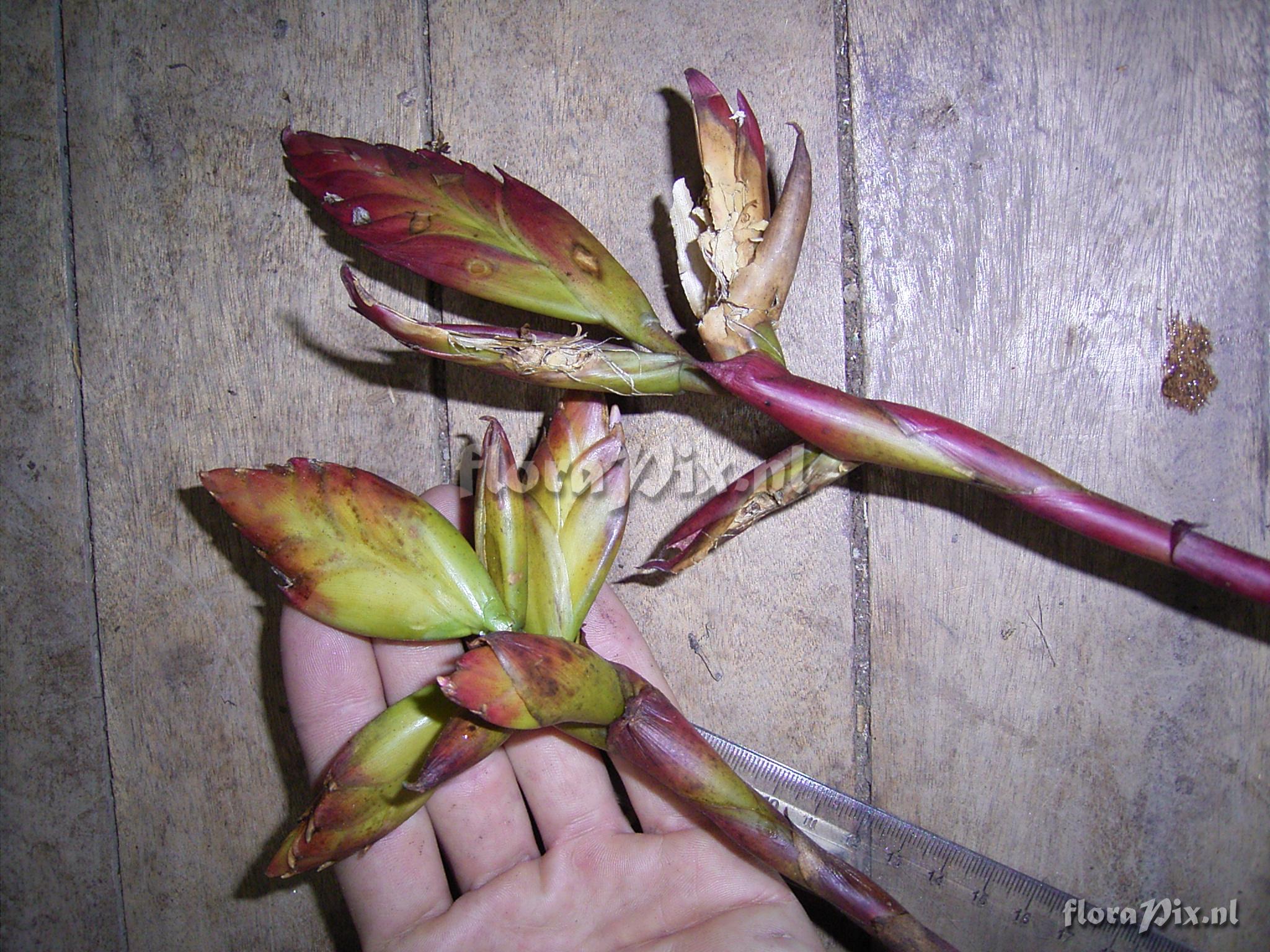 9482 - Bromeliads (Wild) - 2011-10-13(Dimension: 2078 x 1586 pixels - Counter: 8349) Tillandsia ![]() Locality: Ecuador - Prov. of Zamora-Chinchipe, area of Estación Cientifica San Francisco (S 03°58´, W 79°04´ ), road Loja-Zamora, ca. 35 km from Loja; moist montane forest Photographer: Florian Werner Note: Col.: Werner, F.A. 1790 (25-09-2005) bracts light yellow, flowers mild purple.