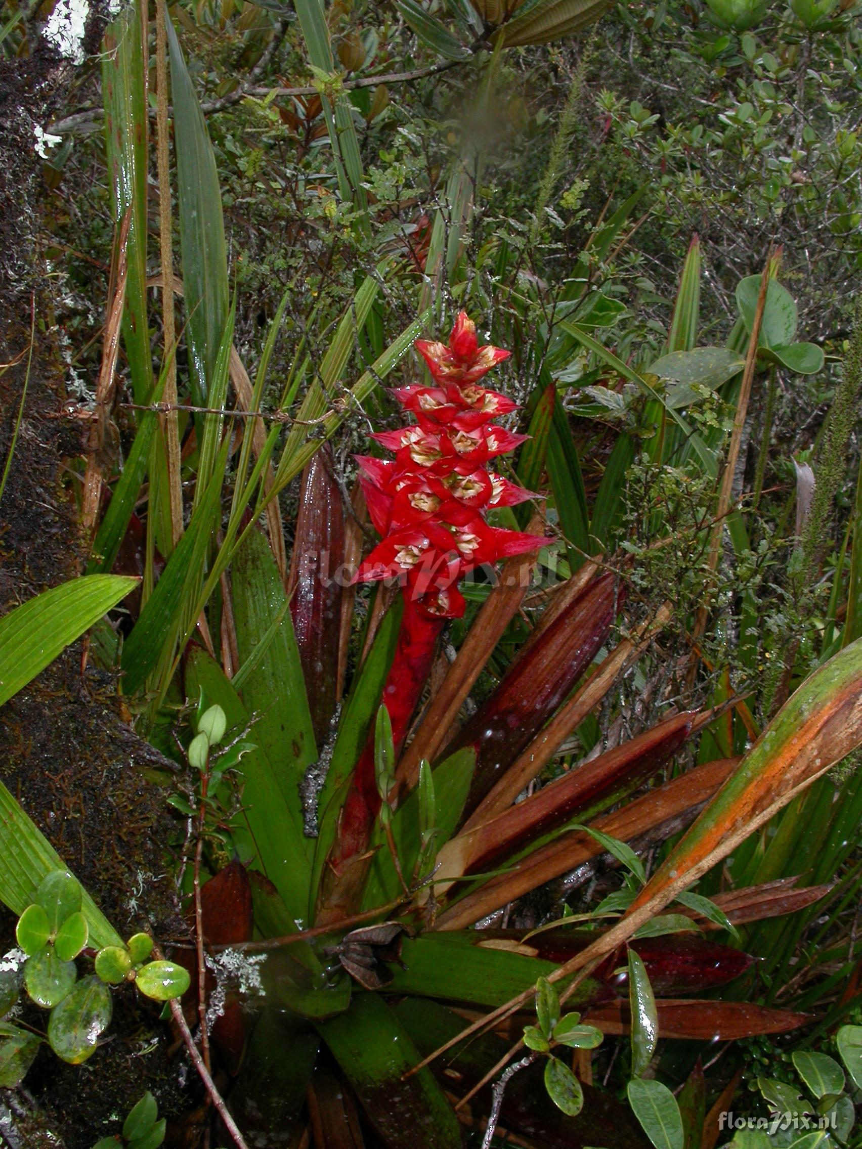 8391 - Bromeliads (Wild) - 2011-10-13(Dimension: 1734 x 2322 pixels - Counter: 8059) Vriesea rubrobracteata ![]() Locality: Ecuador - Prov. of Zamora-Chinchipe, area of Estación Cientifica San Francisco (S 03°58“, W 79°04“ ), road Loja-Zamora, ca. 35 km from Loja; moist montane forest Photographer: Florian Werner Note: (as Werner, F.A. 1422 ) - Det.: J.M. Manzanares flower bracts wool-white, bracts subtending infloresccences and sheating peduncle bright red