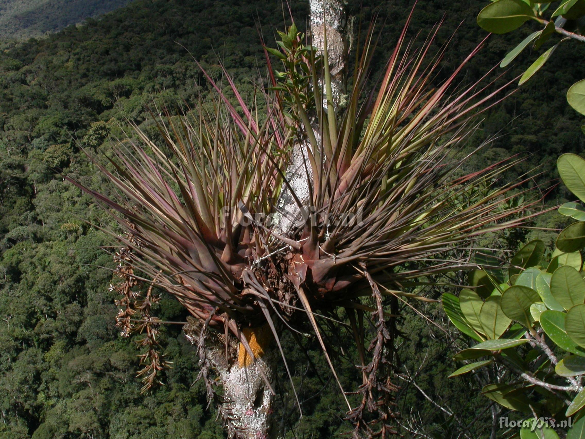 8489 - Bromeliads (Wild) - 2011-10-13(Dimension: 2302 x 1754 pixels - Counter: 13664) Vriesea appendiculata ![]() Locality: Ecuador - Prov. of Zamora-Chinchipe, area of Estación Cientifica San Francisco (S 03°58“, W 79°04“ ), road Loja-Zamora, ca. 35 km from Loja; moist montane forest Photographer: Florian Werner Note: (as Werner, F.A. 2037 ) - Det.: F.A. Werner infl. yellow but petals lila. Common in (drier) forest at 1750-2050 m.