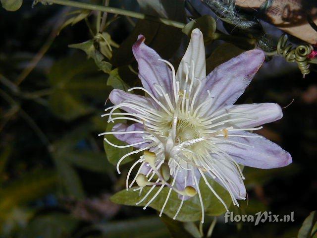 1562 - Passiflora (Garden) - 2006-10-29(Dimension: 670 x 530 pixels - Counter: 5815) Cultivar Kew Gardens x Tucumanensis ![]() Photographer: David Costen Note: The flowers show an unusual arrangement of stamens from the middle of the androgynophore (column).